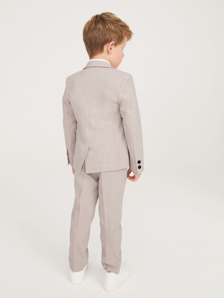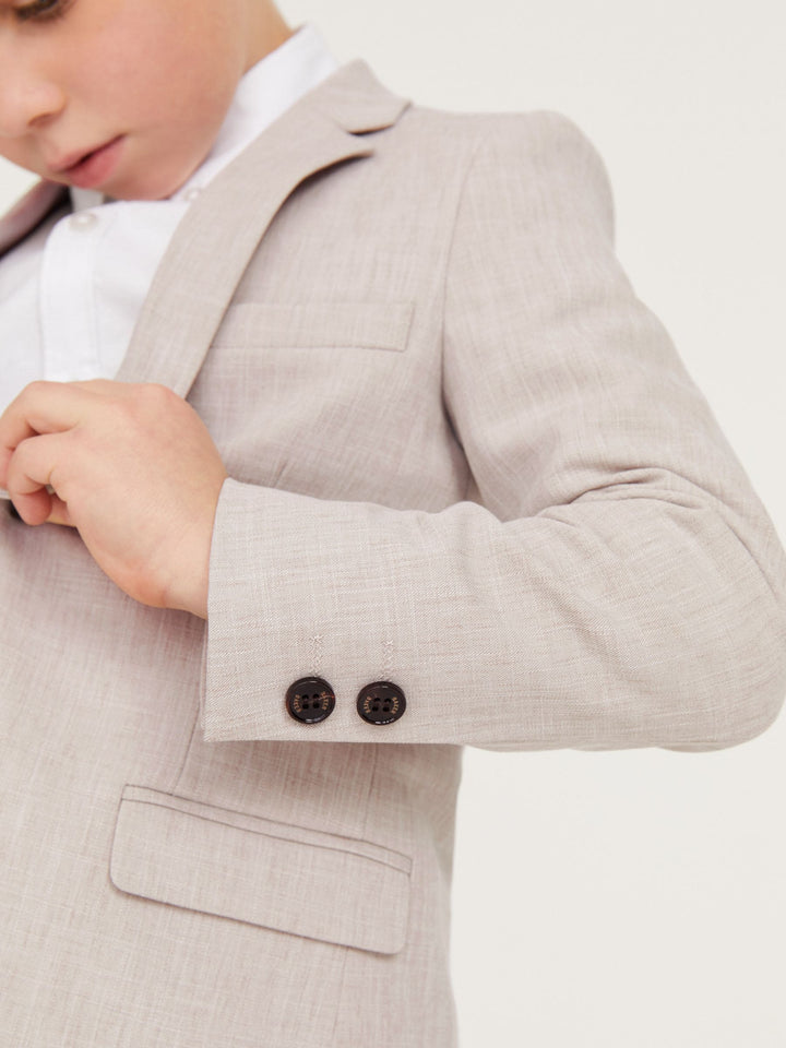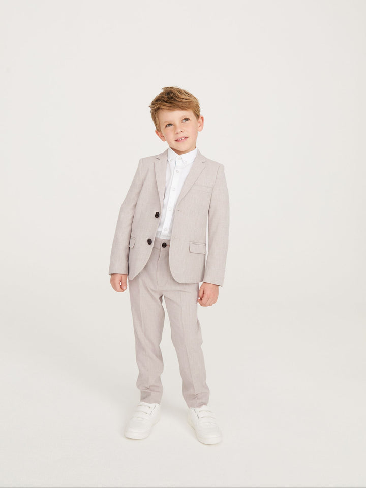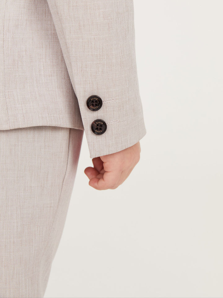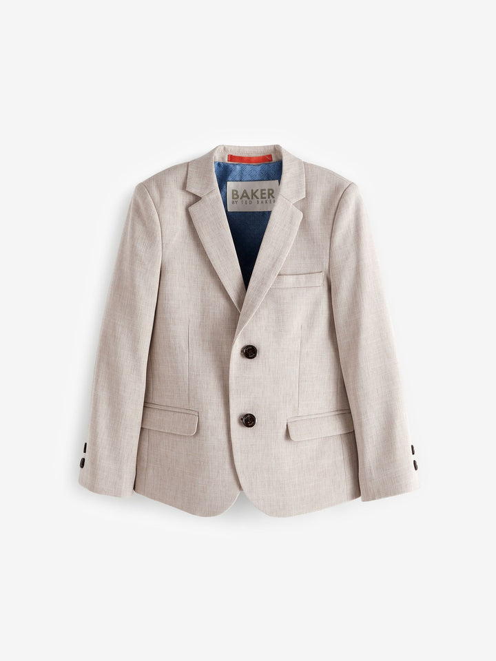 He will be the best dressed guest at all of his special occasions in this boys' Baker by Ted Baker suit jacket. The classically tailored piece is made from a polyester viscose blend and is beautifully finished with branded buttons down the front, pocket details and a notched lapel. Team with the matching trousers to complete the look. Tailored jacket Branded buttons Pocket detail Notched lapel Matching trousers available Shell 47% Viscose, 44% Polyester, 6% Nylon, 3% Elastane. Lining 100% Polyester. Country of Origin: China