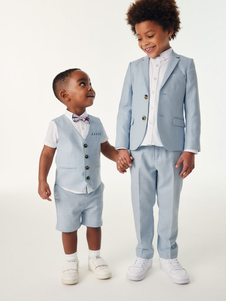 Perfect for special events, these stylish trousers from Baker by Ted Baker will make a lovely addition to his wardrobe. Made from a soft polyester blend, the light blue trousers feature branded Baker buttons, belt loops and traditional button and fly fastenings. Team them with the matching jacket and a crisp white shirt to complete the look. Branded Baker buttons Smart finish Matching jacket available 82% Polyester, 17% Viscose, 1% Elastane. Country of Origin: China