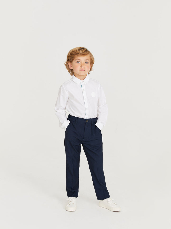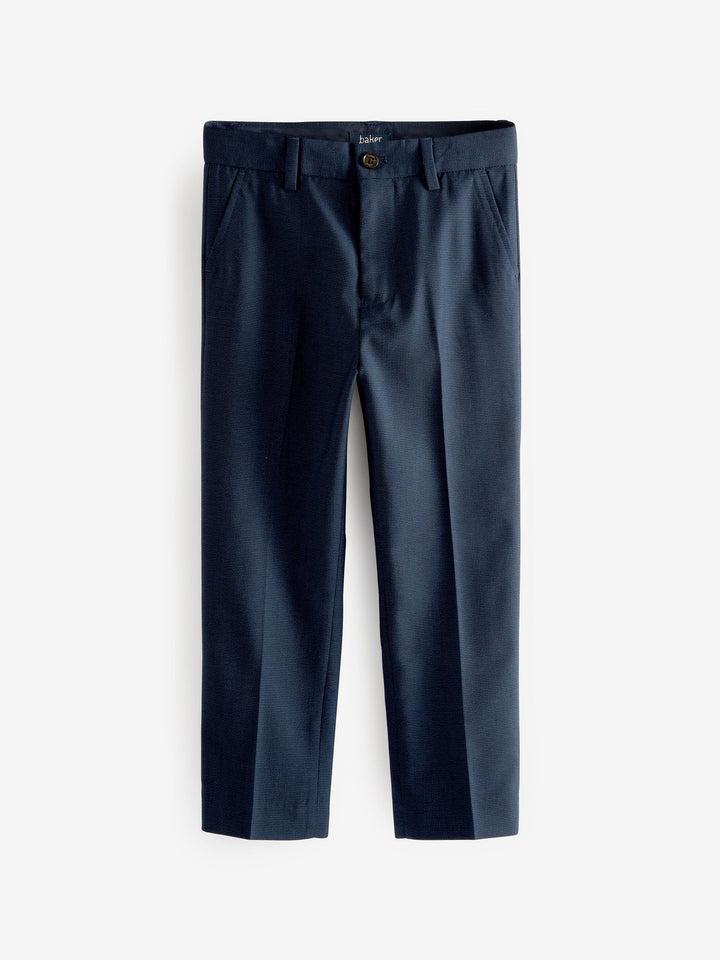 Perfect for special events, these stylish trousers in navy from Baker by Ted Baker will make a lovely addition to his wardrobe. Made from a soft polyester blend, the trousers feature branded Baker buttons, belt loops and traditional button and fly fastenings. Team them with the matching jacket and a crisp white shirt to complete the look. 76% Polyester, 24% Viscose. Country of Origin: China