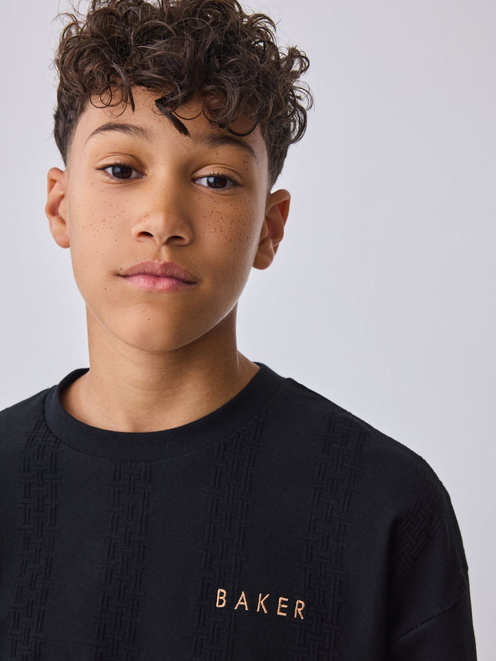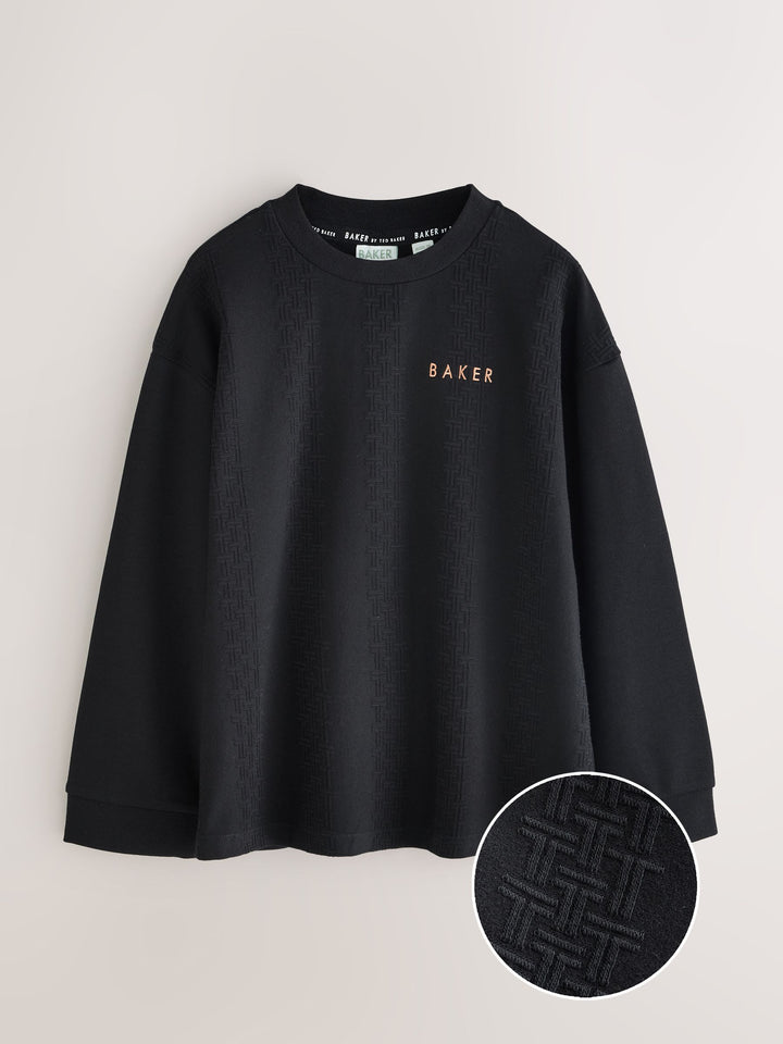 Baker by Ted Baker 'T' Textured Long Sleeve Black T-Shirt