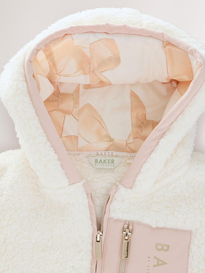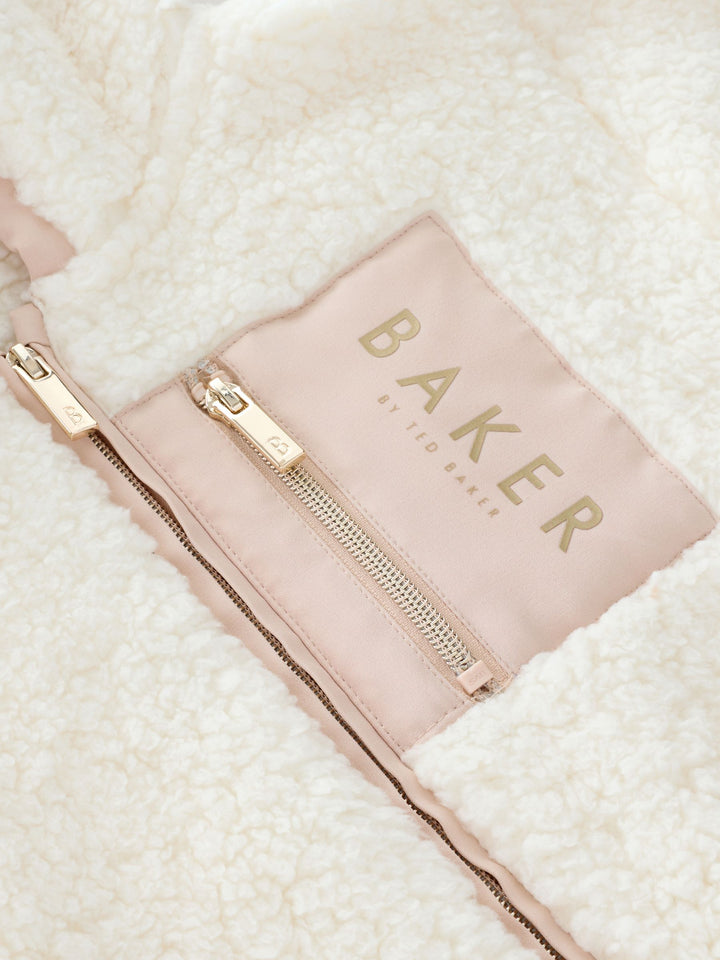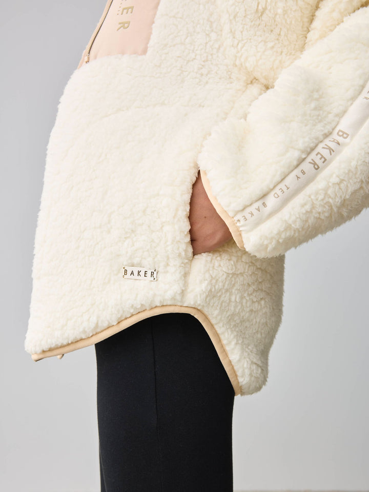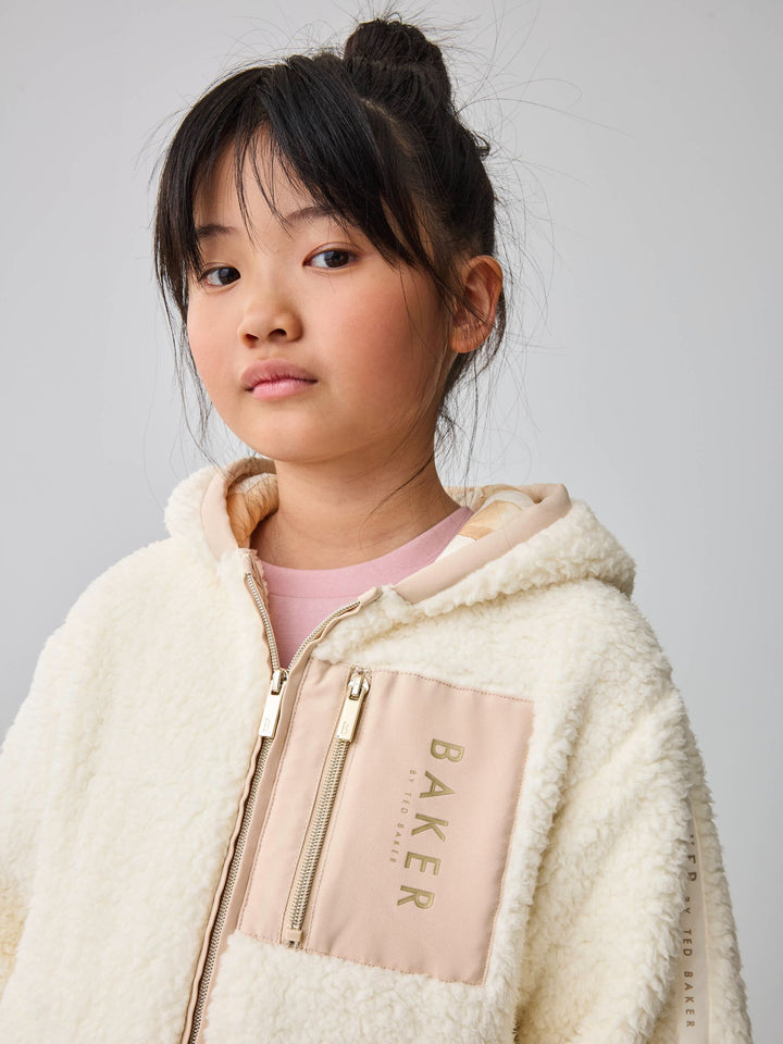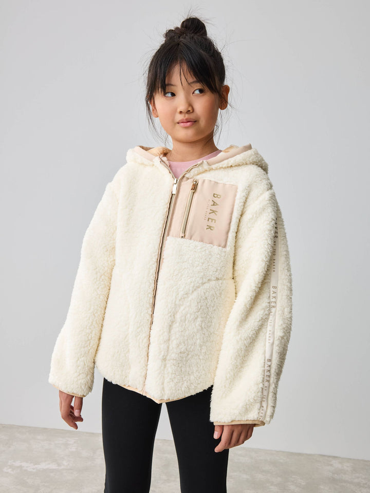 This fleece jacket from Baker by Ted Baker is the perfect layering piece this season. This jacket comes in a soft borg teddy fleece, with soft jersey lining inside. Featuring large branded Baker embroidery across the back, and branded Baker tape detailing down the arms. This fleece also includes a branded patch pocket on the front, along with gold branded hardware. Pair with some jeans and trainers for the perfect outfit. Baker branded tape Branded patch embroidery Gold hardware Shell 100% Polyester. Hood Lining 100% Cotton. Country of Origin: China