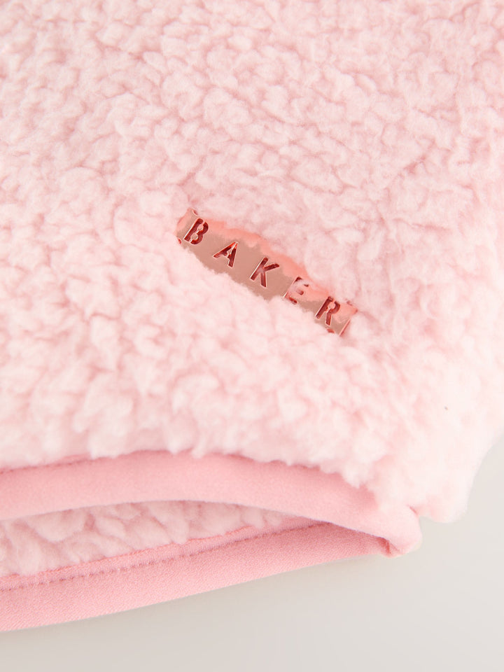 This fleece jacket from Baker by Ted Baker is the perfect layering piece this season. This jacket comes in a soft borg teddy fleece, with soft jersey lining inside. Featuring large branded Baker embroidery across the back, and branded Baker tape detailing down the arms. This fleece also includes a branded patch pocket on the front, along with rose gold branded hardware. Pair with some jeans and trainers for the perfect outfit. Baker branded tape Branded patch embroidery Rose gold hardware Shell 100% Polyester. Hood Lining 100% Cotton. Country of Origin: China