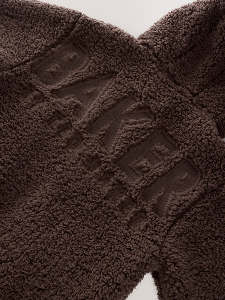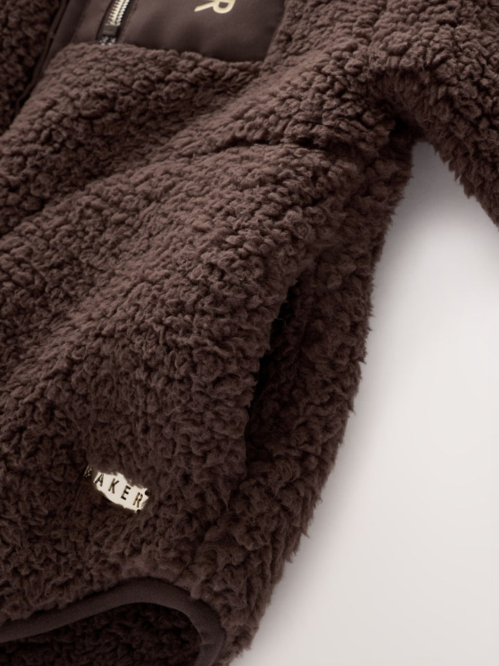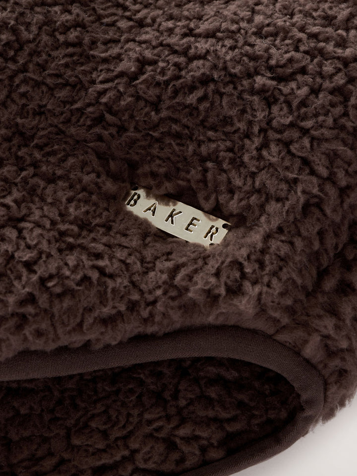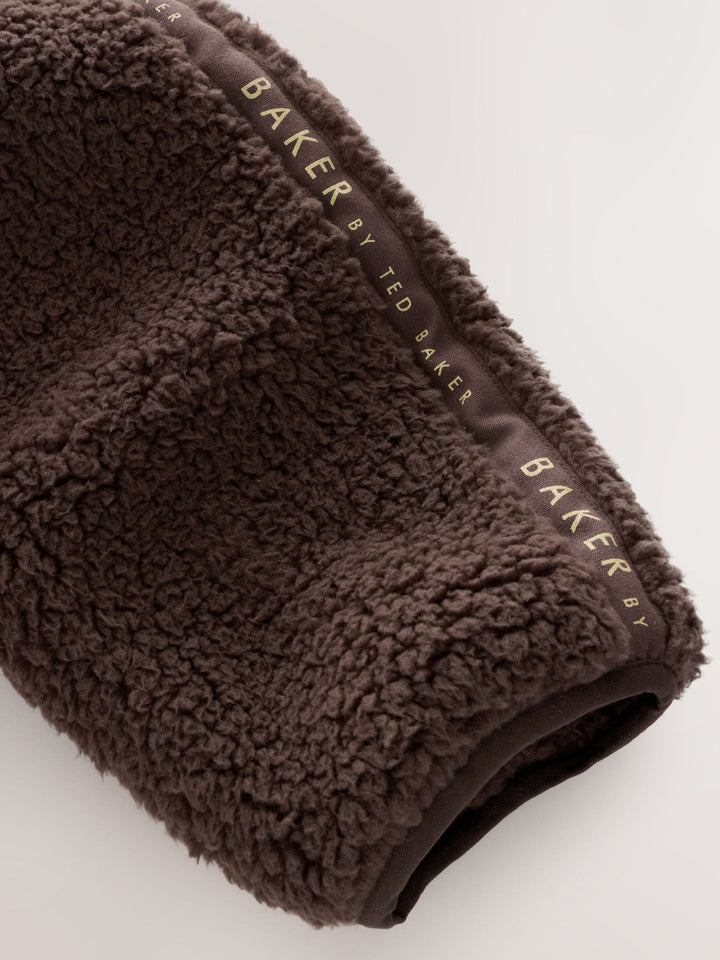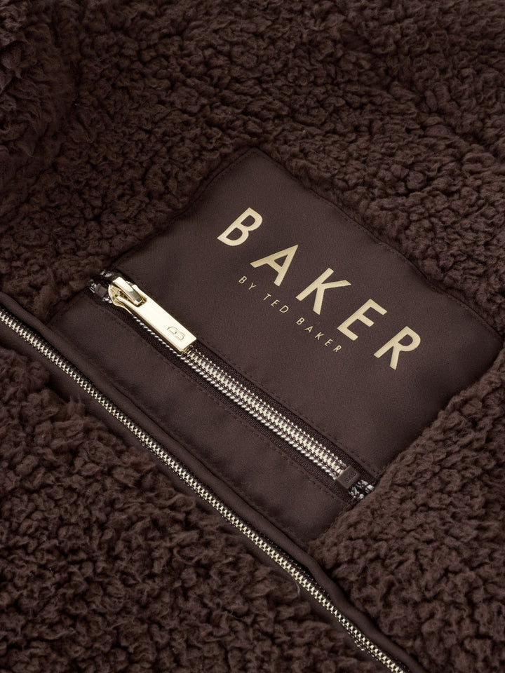 This fleece jacket from Baker by Ted Baker is the perfect layering piece this season. This jacket comes in a soft borg teddy fleece, with soft jersey lining inside. Featuring large branded Baker embroidery across the back, and branded Baker tape detailing down the arms. This fleece also includes a branded patch pocket on the front, along with gold branded hardware. Pair with some jeans and trainers for the perfect outfit. Baker branded tape Branded patch embroidery Gold hardware Shell 100% Polyester. Hood Lining 100% Cotton. Country of Origin: China