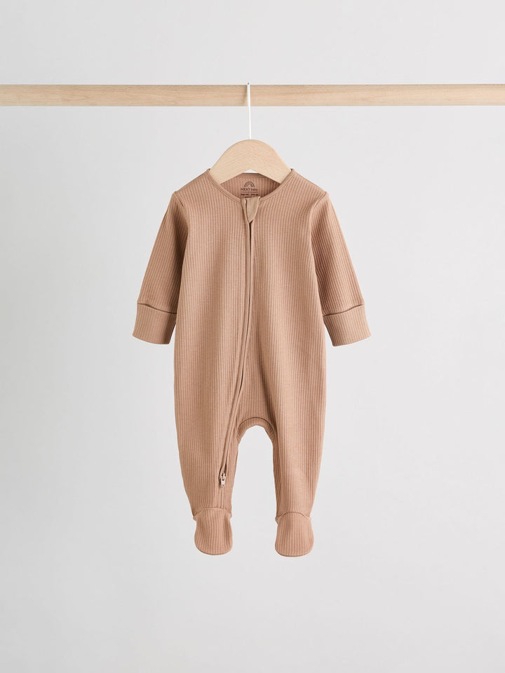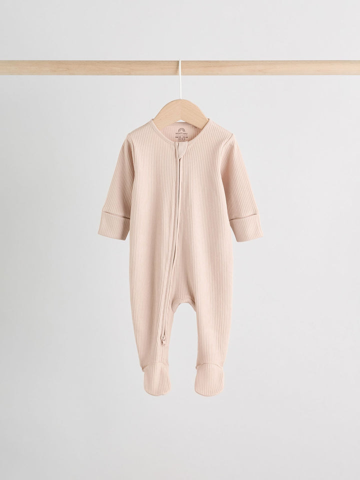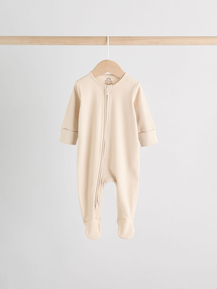 Beige Baby Two Way Zip Sleepsuits 3 Pack (0-2yrs)
