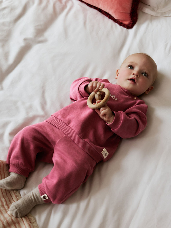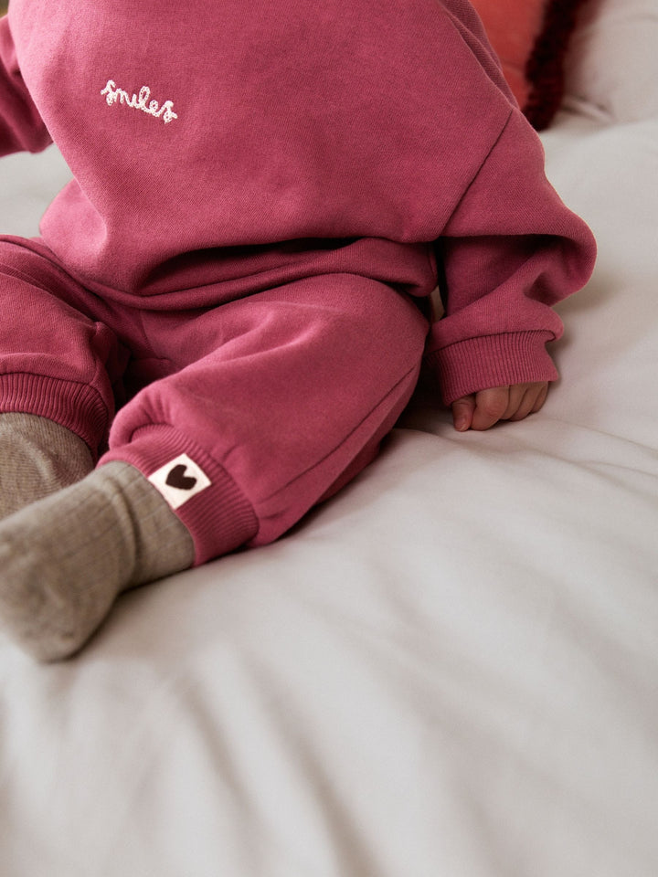 Machine washable. Sweater and Jogger 90% Cotton, 10% Recycled polyester. Country of Origin: Bangladesh Warning: Keep away from fire and flames.