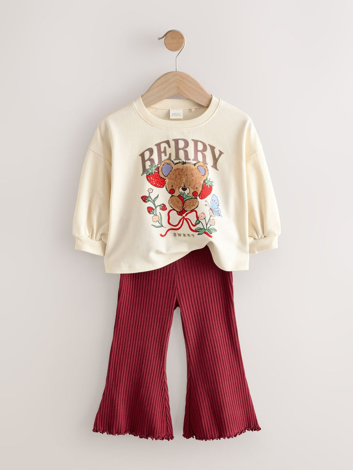 Berry Red Bear Character Long Sleeve Top and Flare Set (3mths-7yrs)