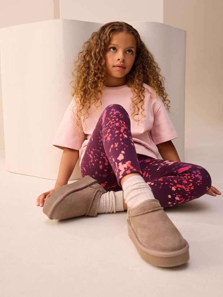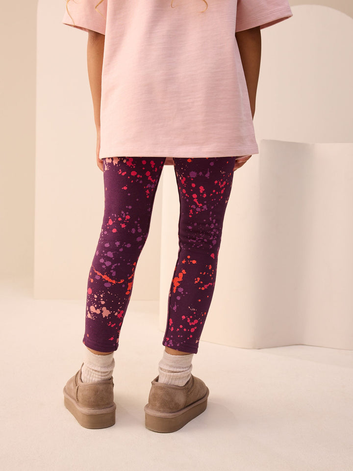 Berry Red Splat Cosy Fleece Lined Leggings (3-16yrs)