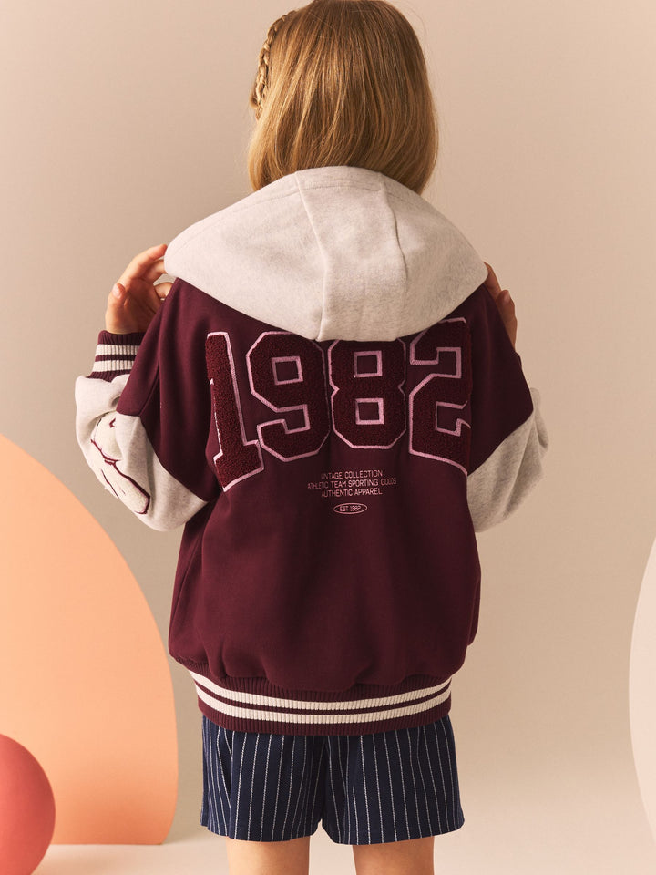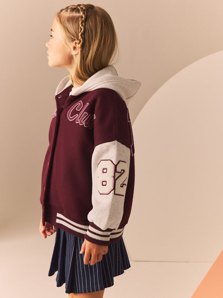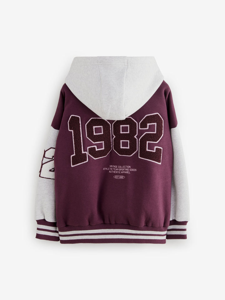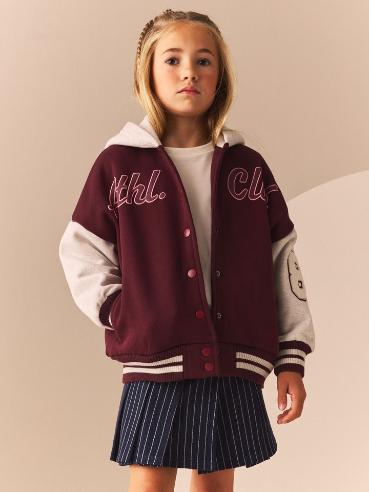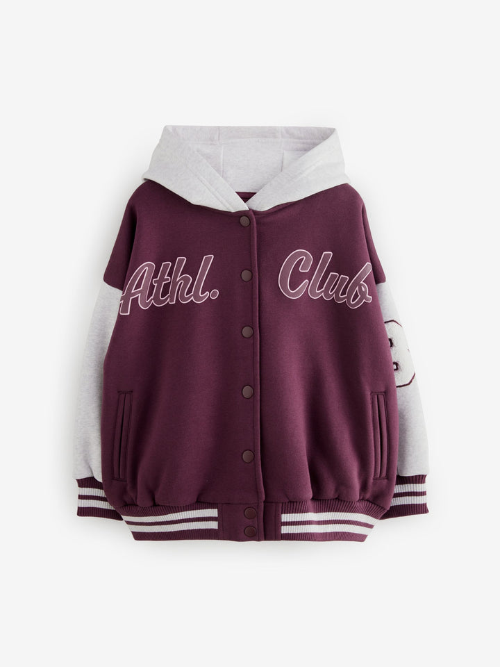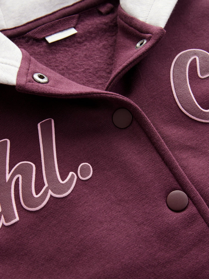 This varsity-inspired jacket is made from a soft brushed cotton-blend fabric, featuring a press-stud fastening with stitched graphics, side pockets, a classic hood and ribbed hems. Regular fit Cotton-blend fabric Press-stud fastening Varsity graphics Set-in hood Machine washable. Main 80% Cotton, 20% Recycled polyester. Sleeves 81% Cotton, 19% Recycled polyester. Hood 81% Cotton, 19% Recycled polyester. Country of Origin: Pakistan