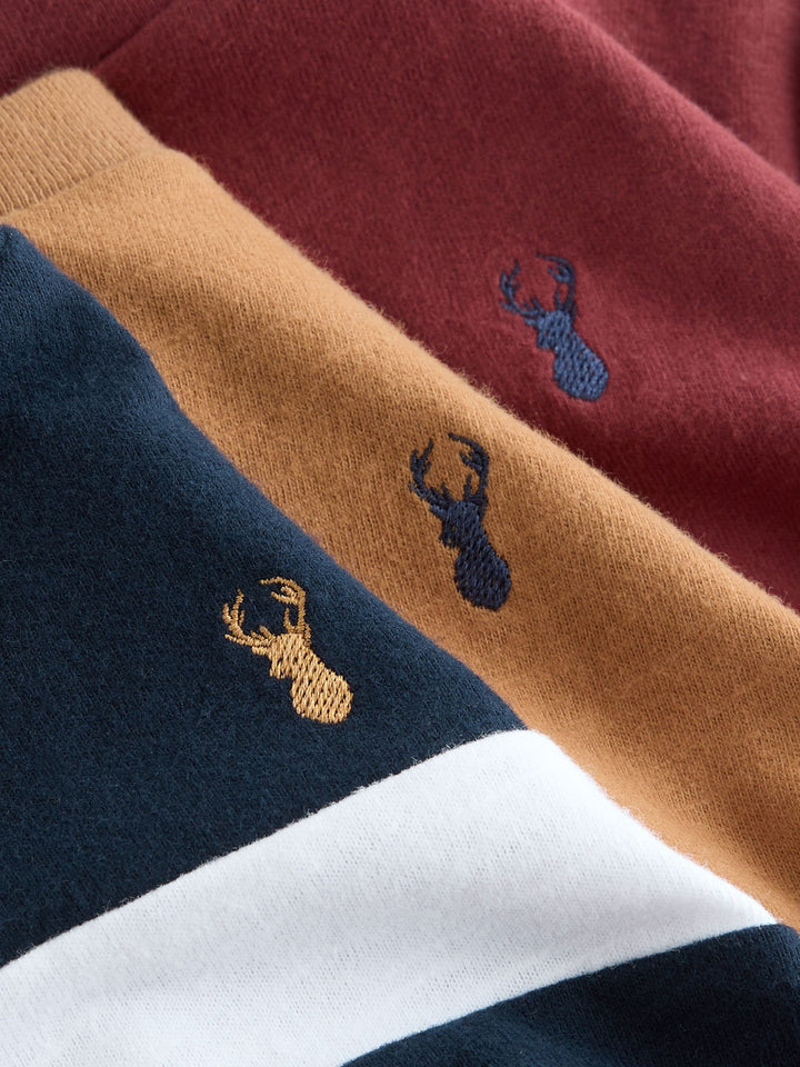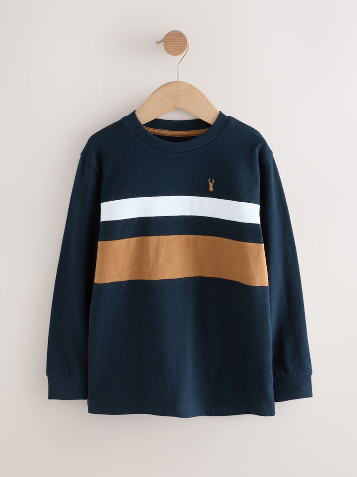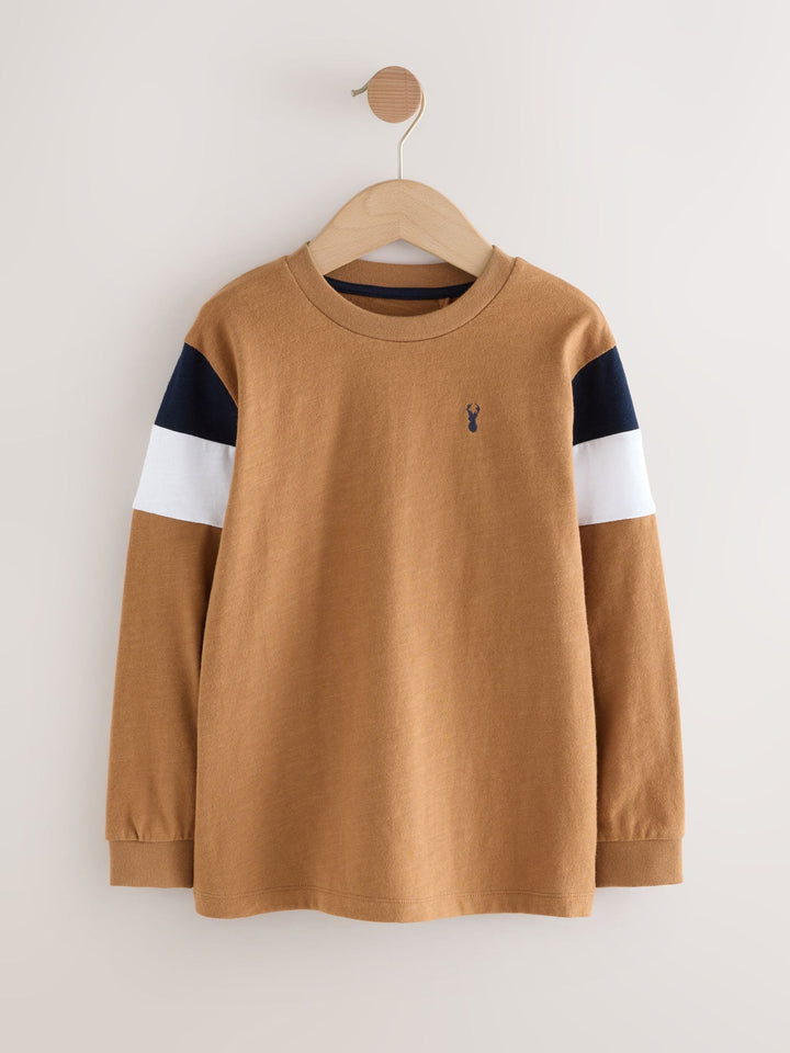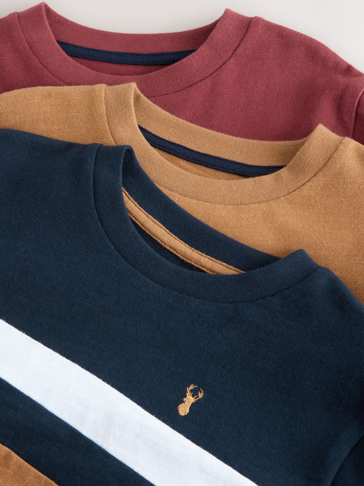 Berry/Tan/Navy Long Sleeve Colourblock T-Shirts 3 Pack (3-16yrs)