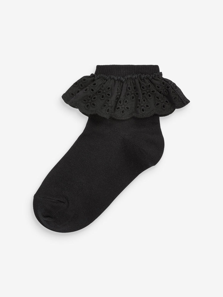 Black 2 Pack Cotton Rich Ruffle Ankle Socks