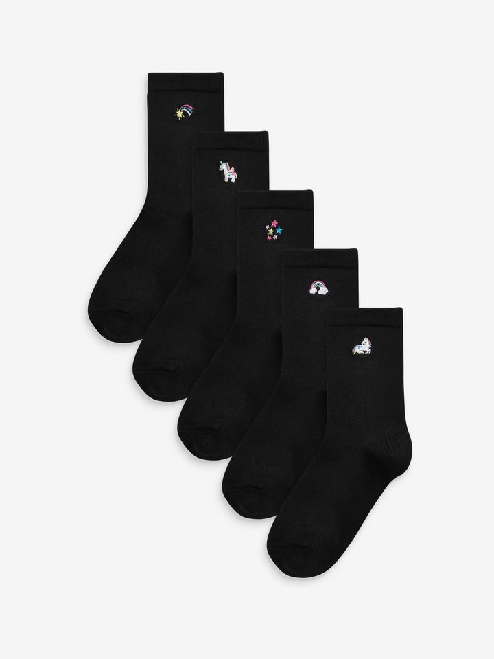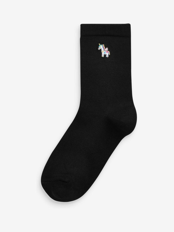 Black 5 Pack Unicorn Embroidered Ankle Socks