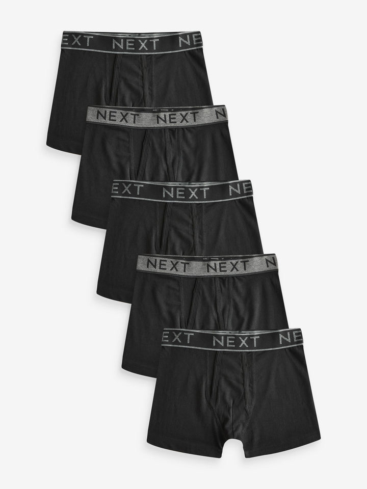 Keep them well-stocked on everyday staples, with this 5-pack of A-front trunks, made from a cotton-rich fabric with added stretch, a functional front opening and a NEXT branded elasticated waistband. 5-pack Cotton-rich fabric A-front Branded elasticated waistband 5 x Trunks (underwear) 95% Cotton, 5% Elastane. Country of Origin: Bangladesh