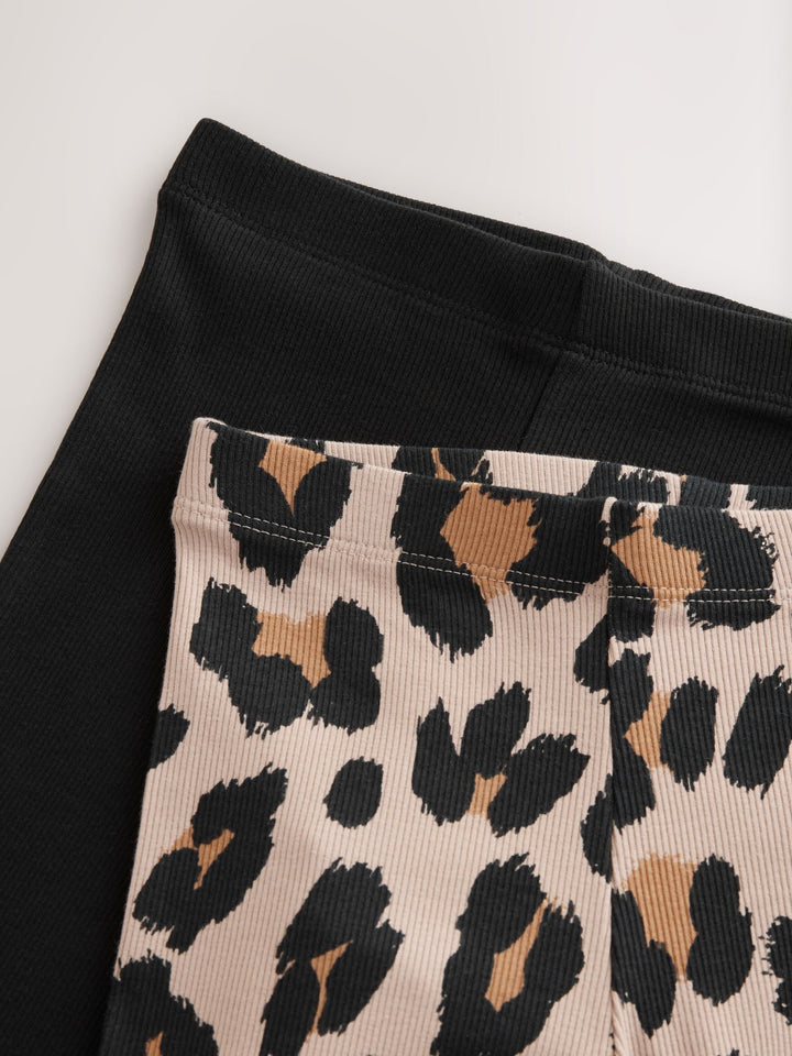Black and Animal 2 Pack Rib Flare Leggings (3-16yrs)