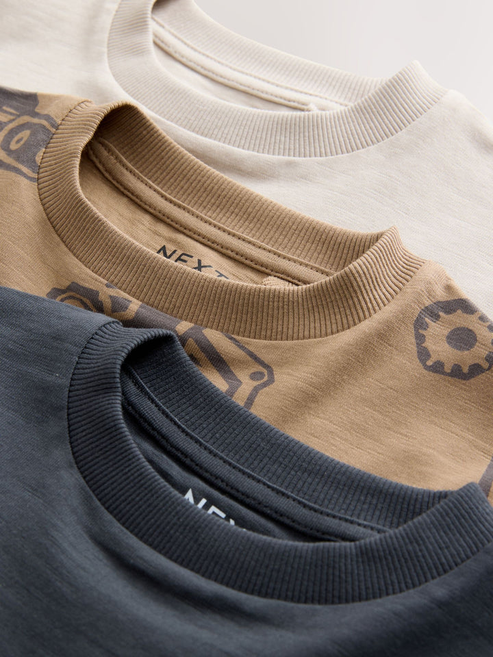 Black/Brown Digger Long Sleeve Graphic Print T-Shirts 3 Pack (3mths-7yrs)