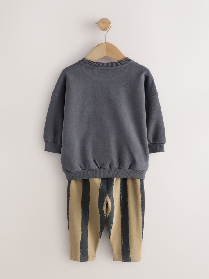 Black/Brown Single Sweatshirt And Stripe Joggers Set (3mths-7yrs)