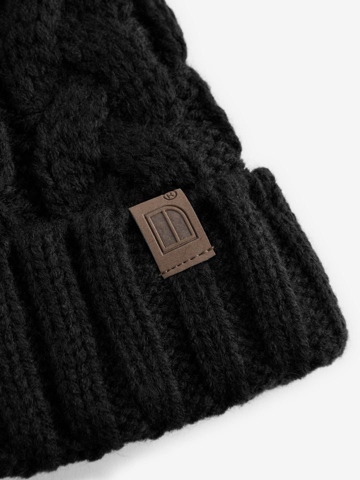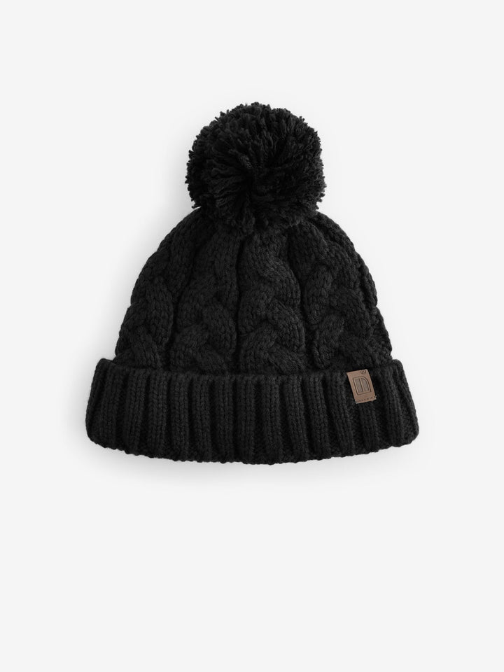 The perfect layer for their cold weather wardrobe, our stretch cotton cable knit pom hat is warm and stylish. Pom hat Cable knit Stretch cotton Outer 100% Acrylic. Lining 95% Cotton, 5% Elastane. Country of Origin: China