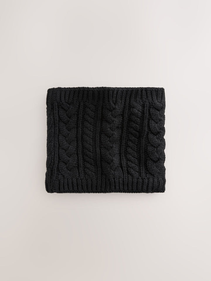 In a cable knit design, this cosy snood is the perfect accessory for him to style with his winter looks, finished with a soft fleece lining. Cable knit design Fleece lining Perfect for winter Main 100% Acrylic. Lining 100% Polyester. Country of Origin: China