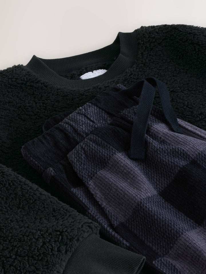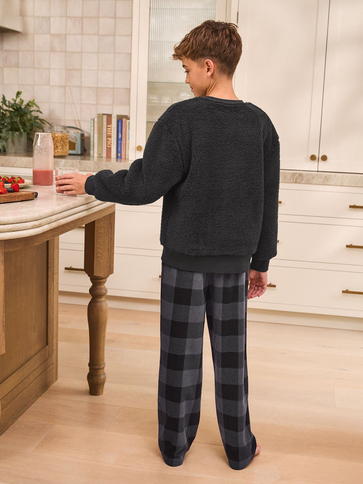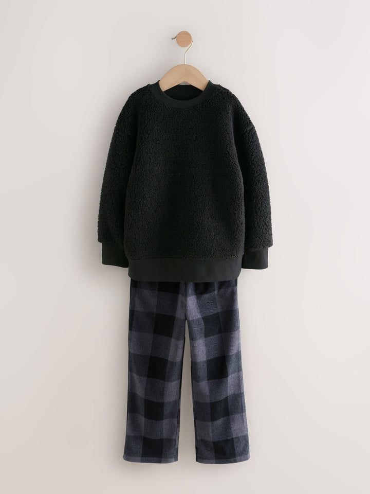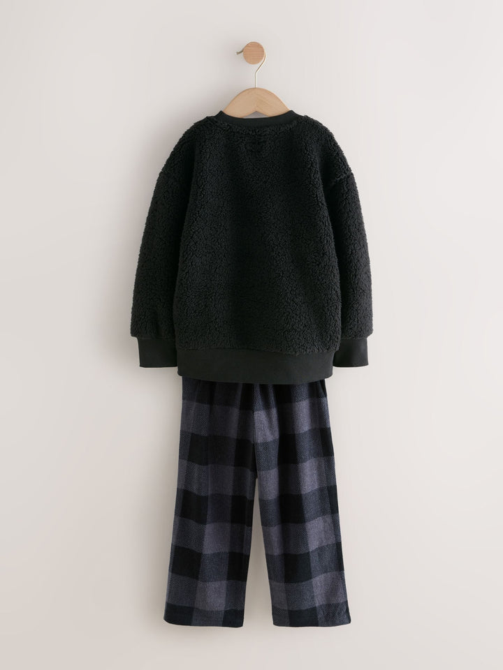 Black Check Bottom Single Cosy Fleece Pyjamas (3-16yrs)