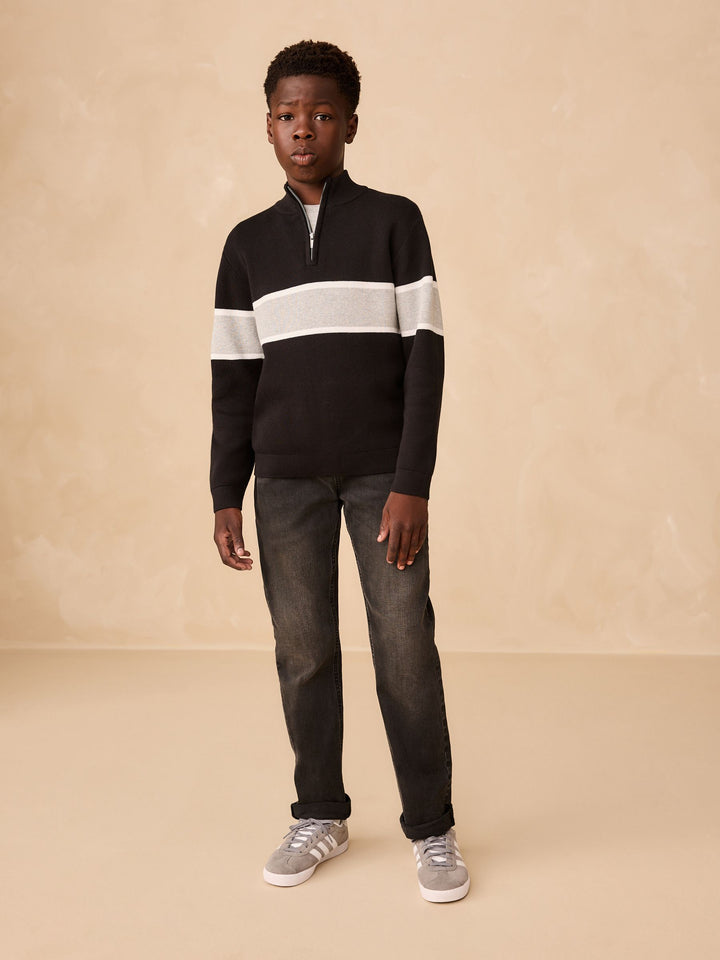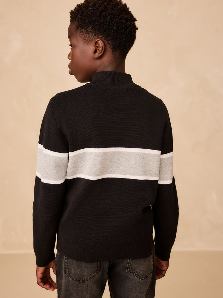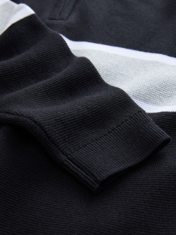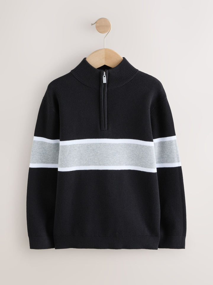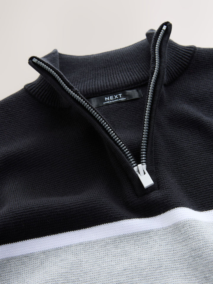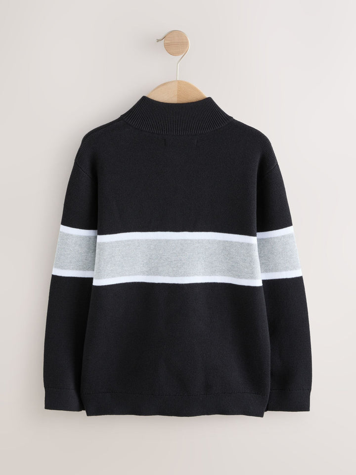 Black Colourblock Zip Neck Knitted Jumper (3-16yrs)