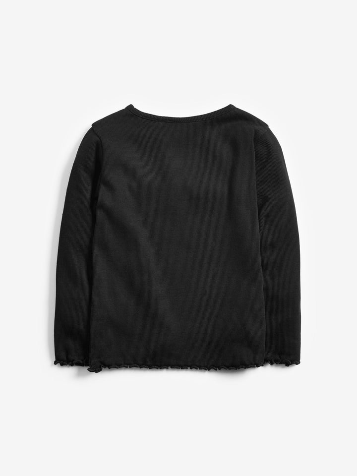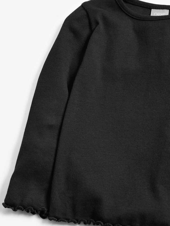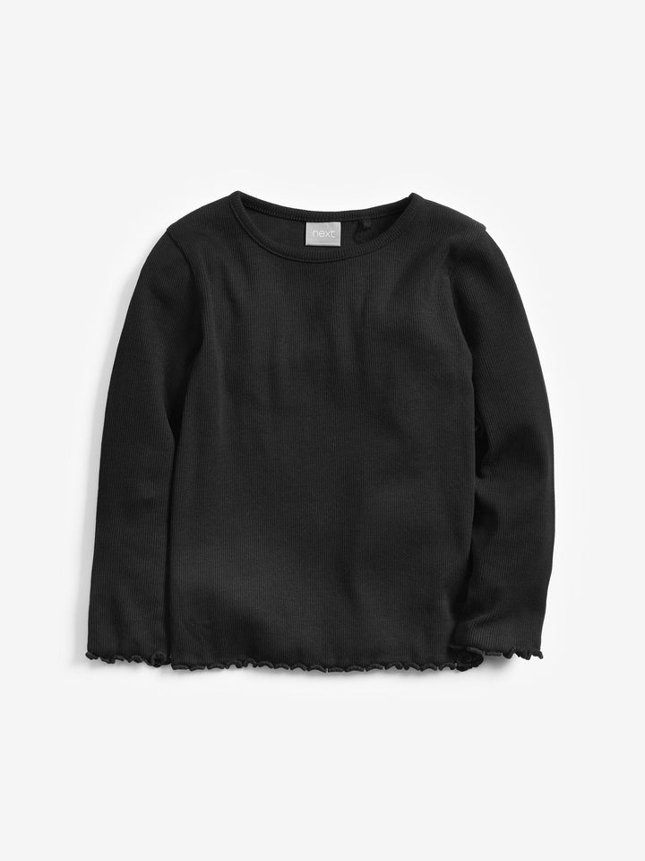 Stock-up on style staples for your little ones, with this black stretchy rib long sleeve T-Shirt, finished with fluted edges and a crewneck collar. Regular fit Rib fabric Crewneck collar Fluted edges Machine washable. 95% Cotton, 5% Elastane. Country of Origin: Bangladesh