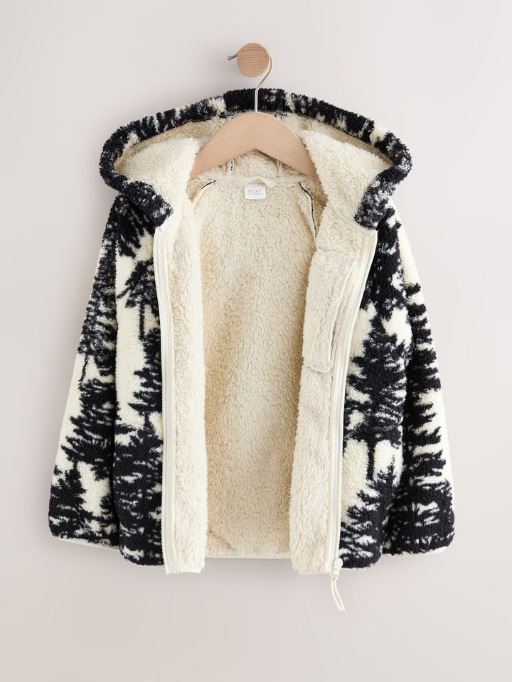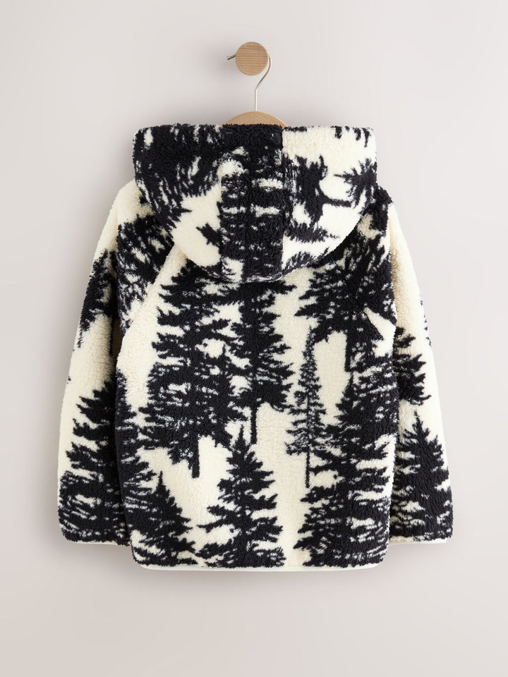 Black/Cream Tree Print Matching Family Hooded Zip Borg Fleece Jacket (3-16yrs)