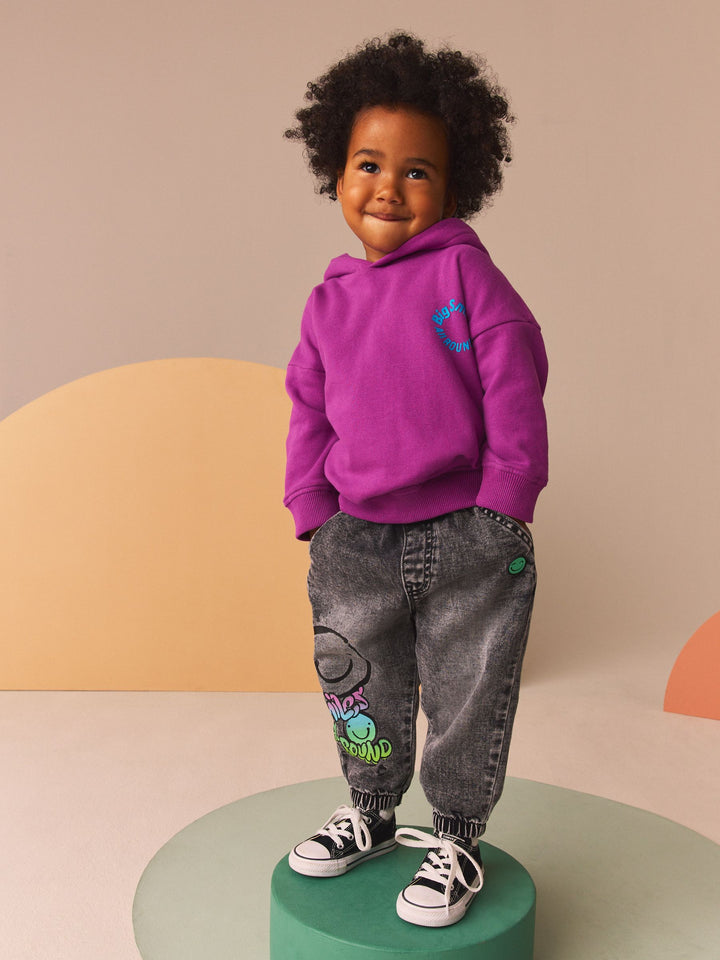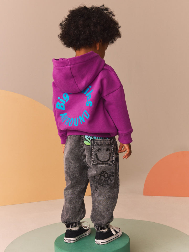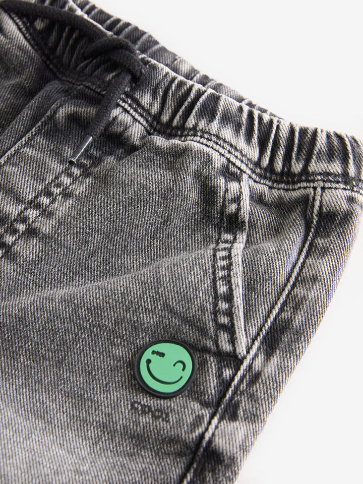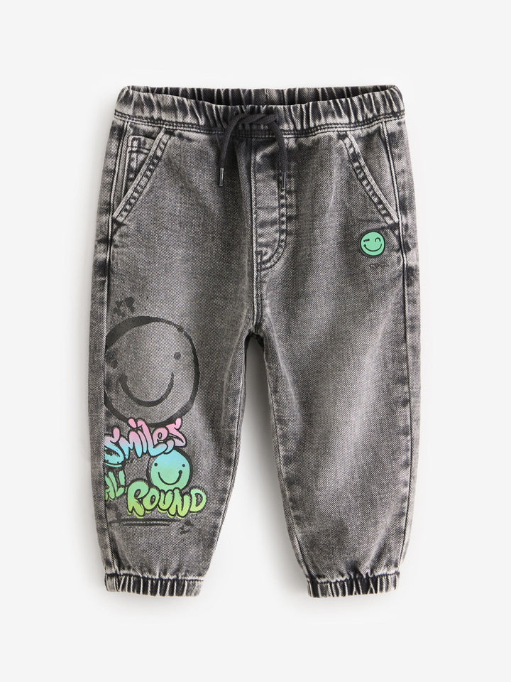Let your little one express themselves in these stylish statement jeans, featuring a light blue denim construction crafted from pure cotton. The jeans have a comfortable elasticated waistband with an adjustable drawstring, a graffiti all-over print, dual side pockets and a single rear pocket, finished with cuffed ankles. Regular fit 100% cotton denim Light blue wash Graffiti print Adjustable elasticated waist Ankle cuffs 100% Cotton. Country of Origin: Bangladesh