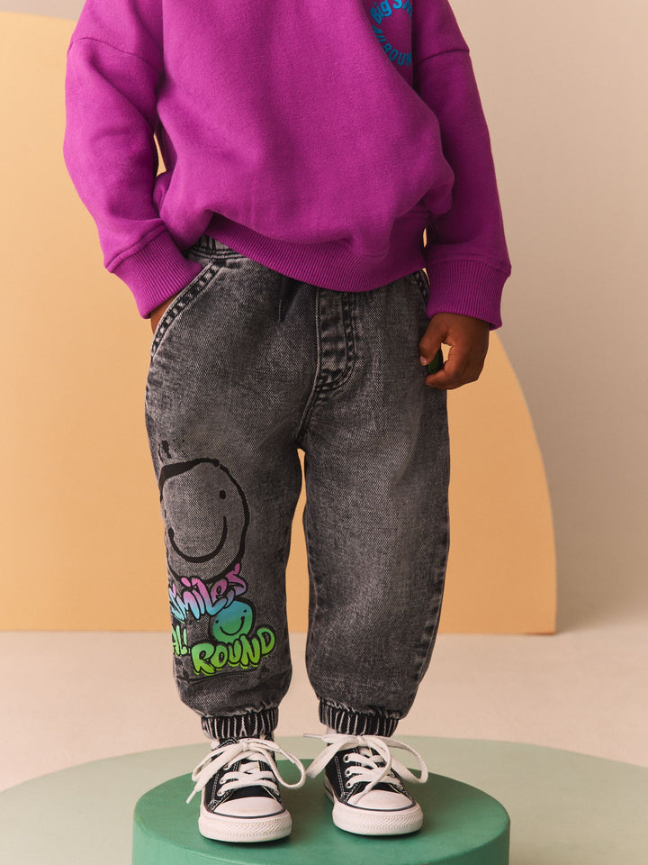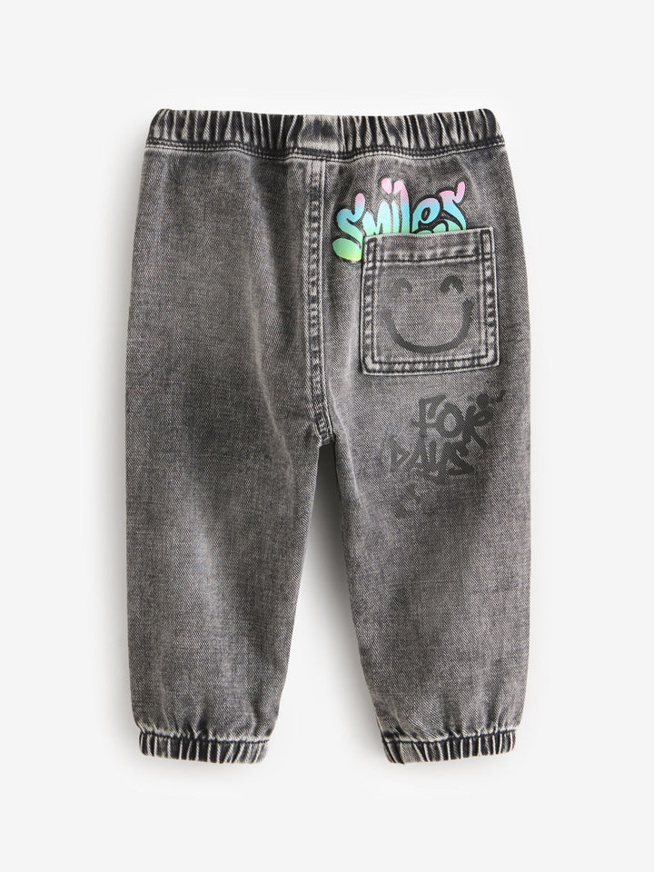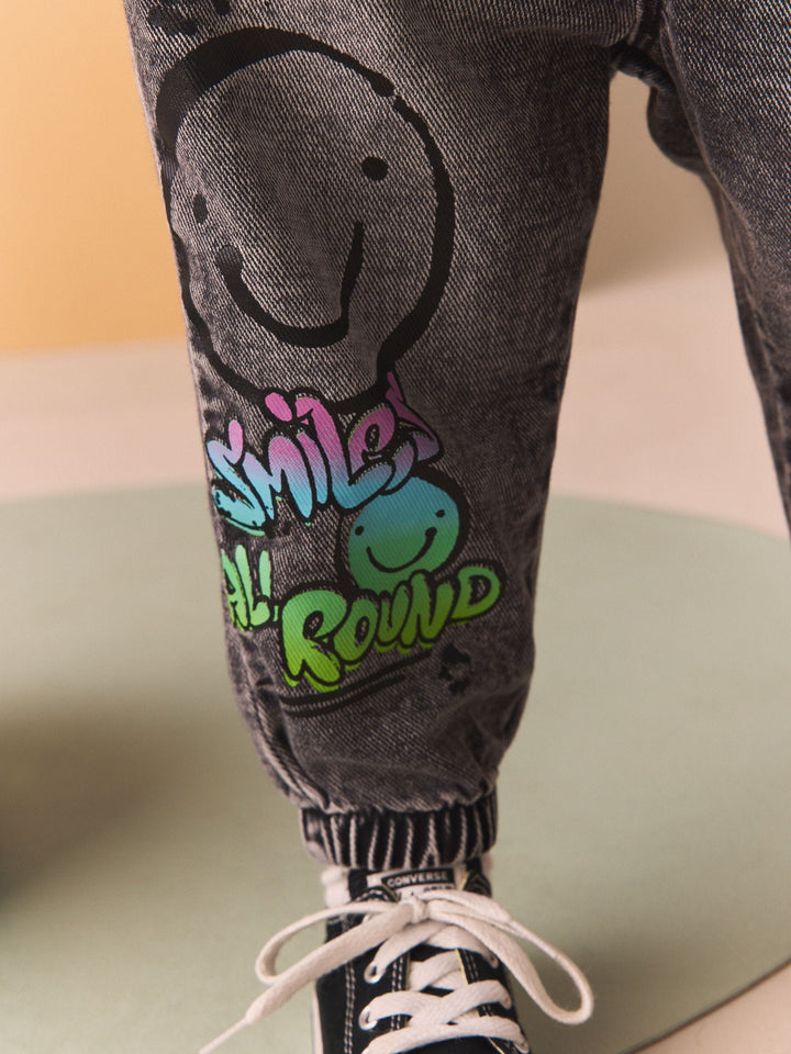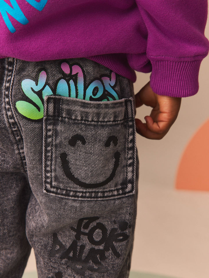 Black Denim 100% Cotton Graffiti Print Jeans (3mths-7yrs)