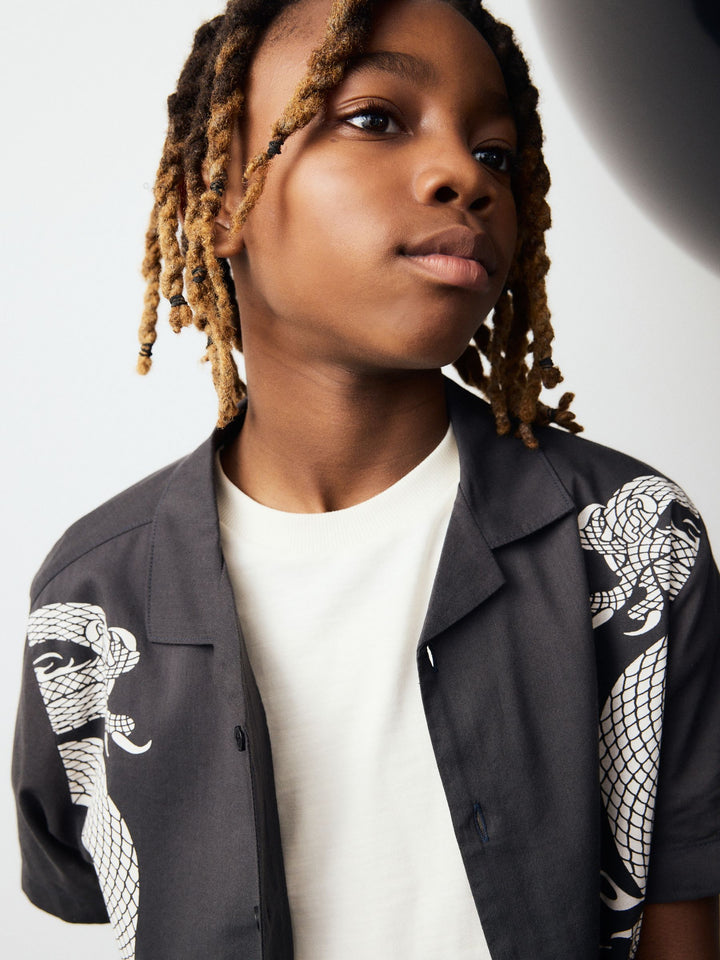 Step into the season in style with this ecru short-sleeved shirt. The soft, drapey viscose fabric provides a comfortable feel, while the all-over abstract floral print adds a modern touch. With a button-front fastening and a classic collar, it is a versatile piece for a smart or casual occasion. Drapey viscose fabric Abstract print Short sleeves Classic Collar Button-front fastening 56% Cotton, 44% Viscose. Country of Origin: Bangladesh