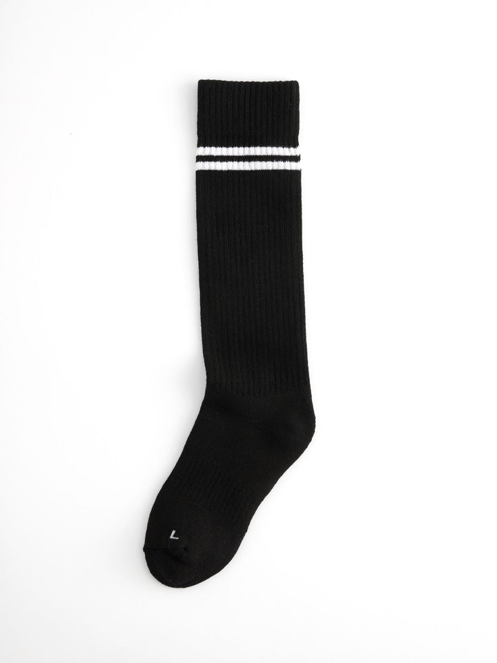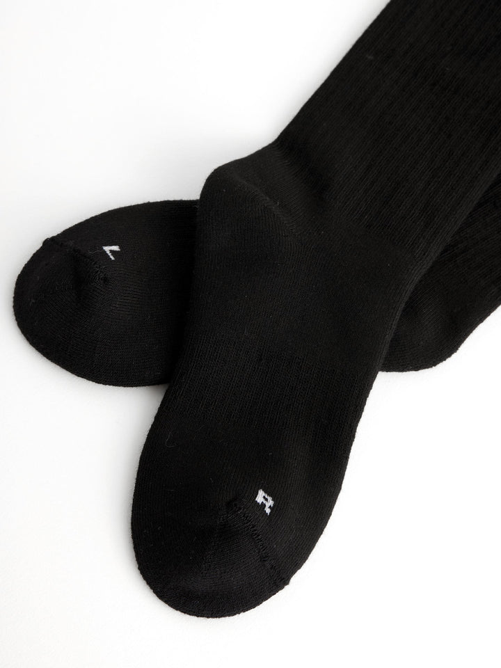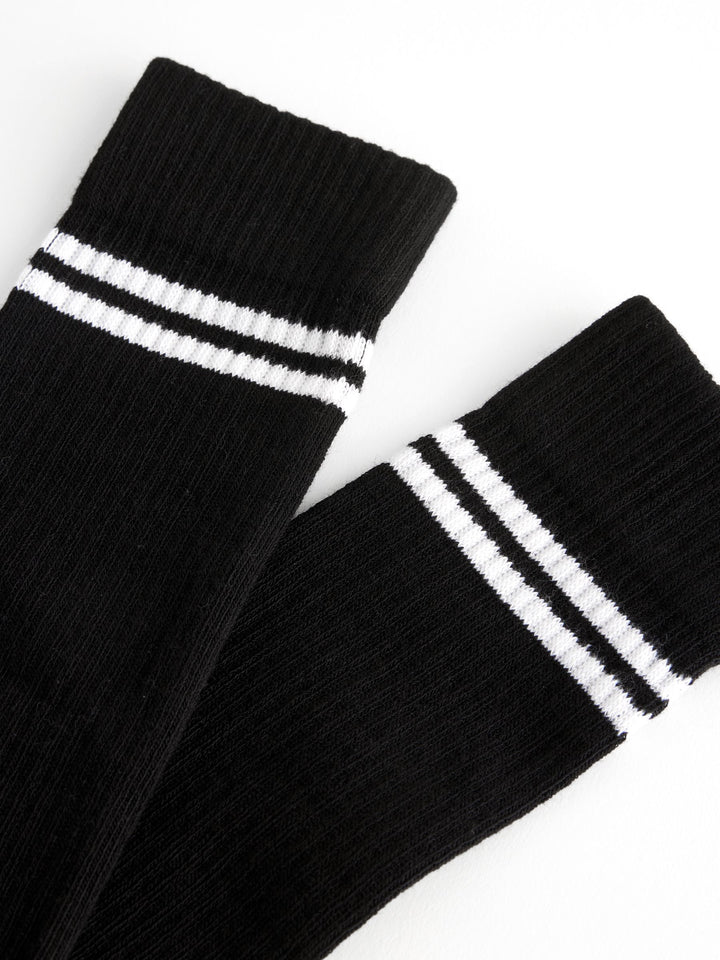These cotton rich black football socks feature a comfortable cushioned sole, finished with striped detailing. Wear for training or to simply style with a skirt and graphic tee. 1-pack Cotton-blend fabric Cushioned sole Striped design This product contains the biocide linseed oil Machine washable. 70% Cotton, 27% Nylon, 3% Lycra® Elastane. Country of Origin: Turkey