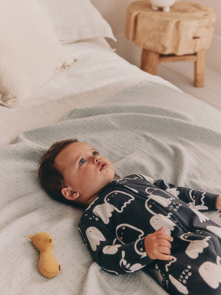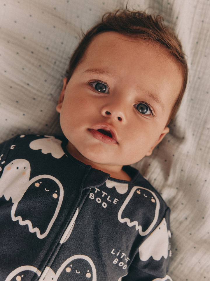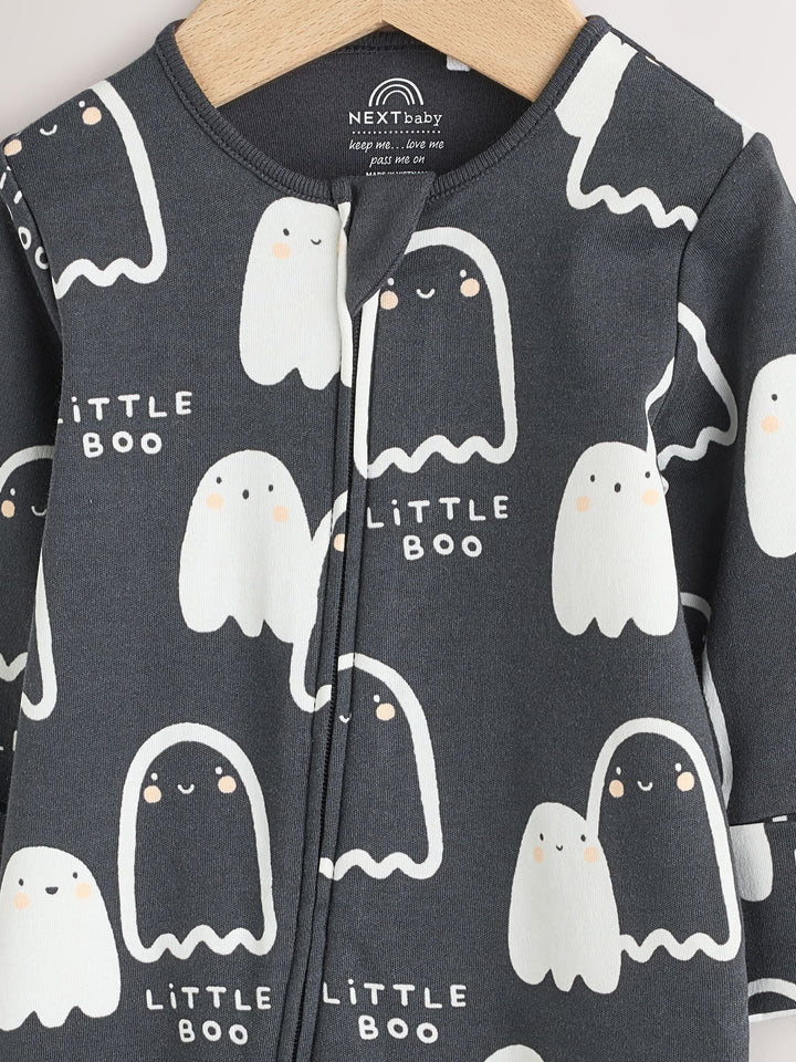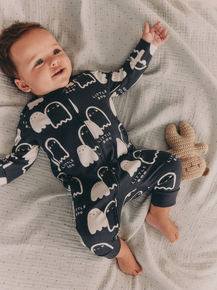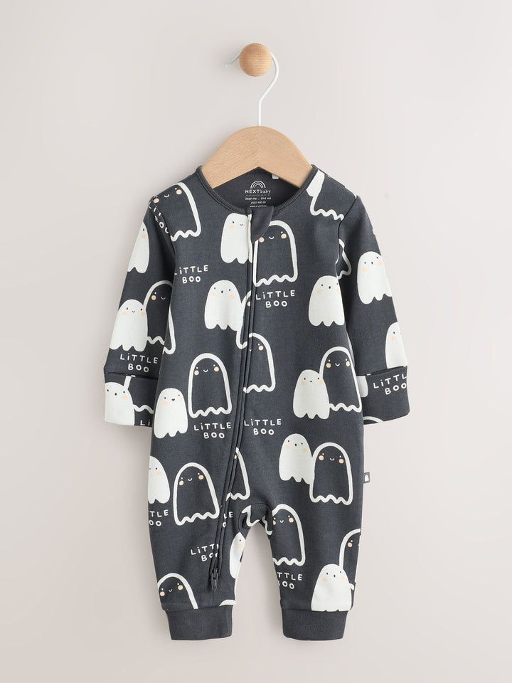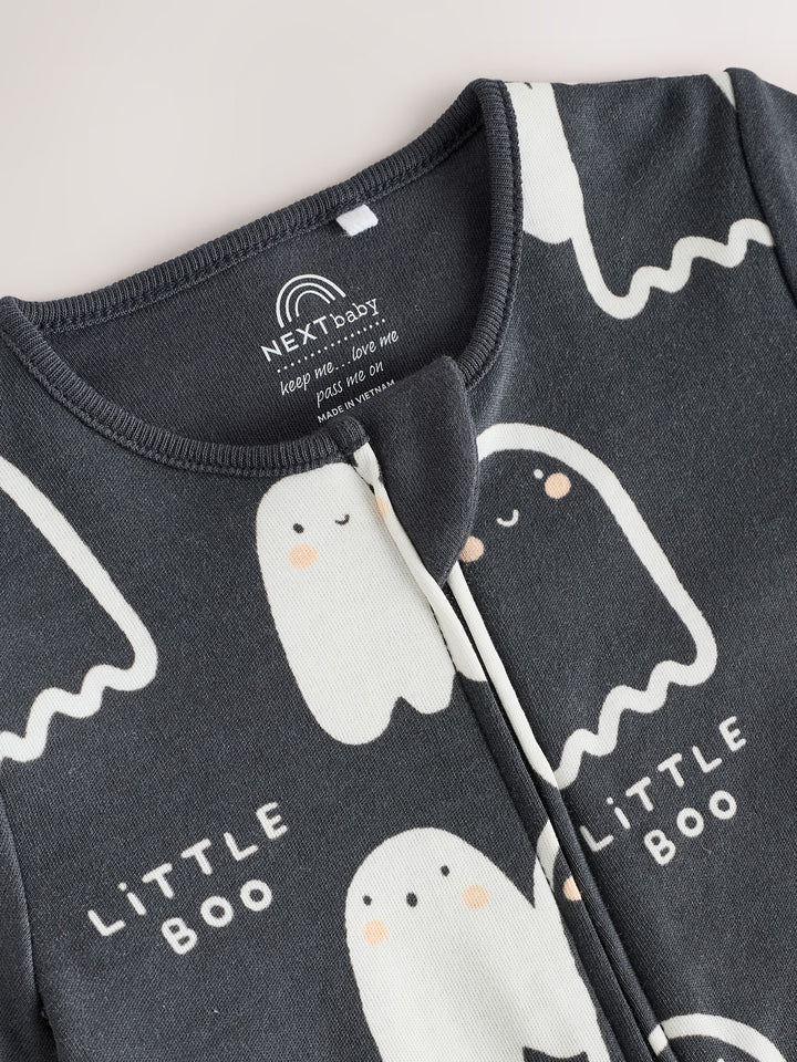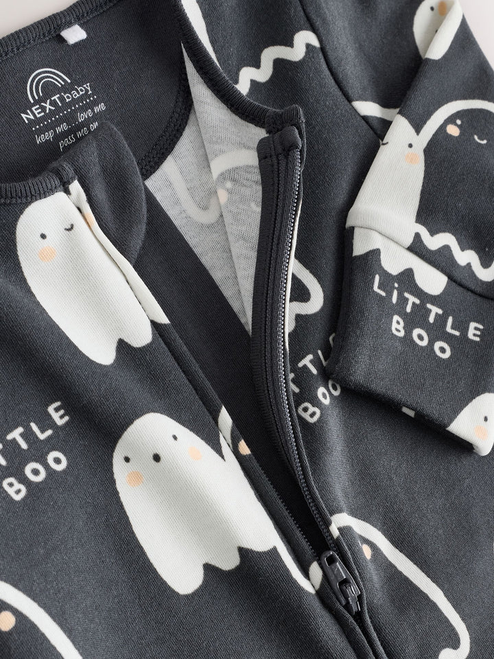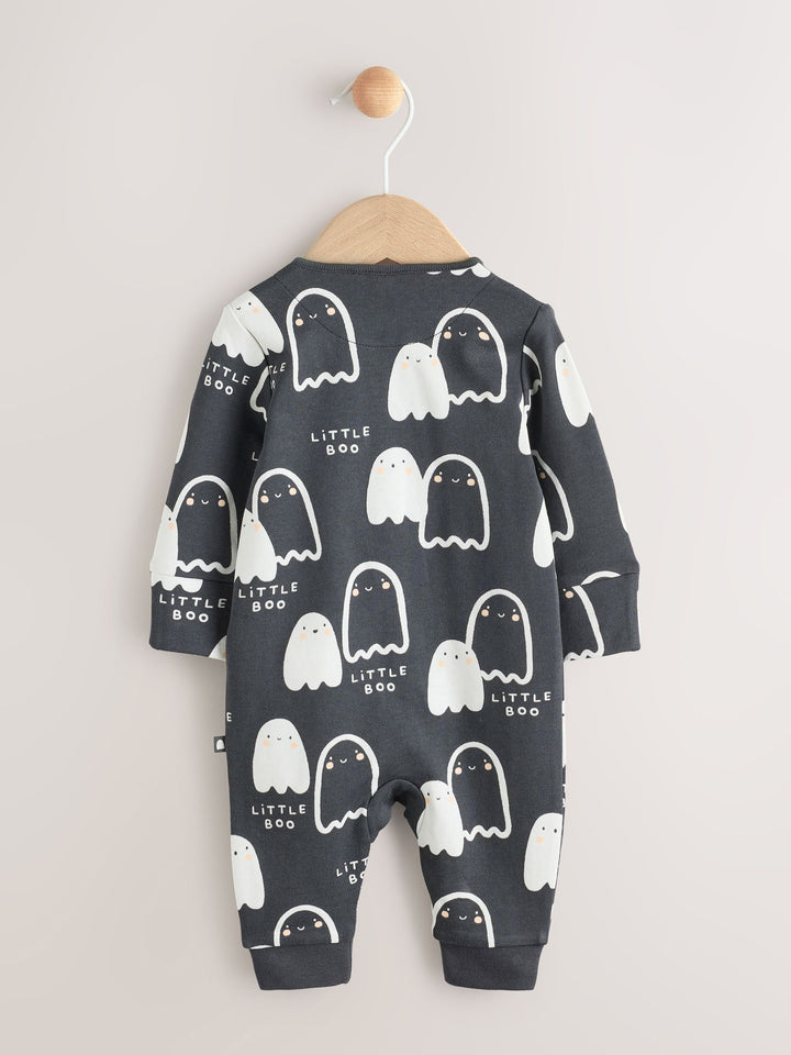 Black Ghost Glow in the Dark Halloween Two Way Zip Baby Sleepsuit (0mths-2yrs)