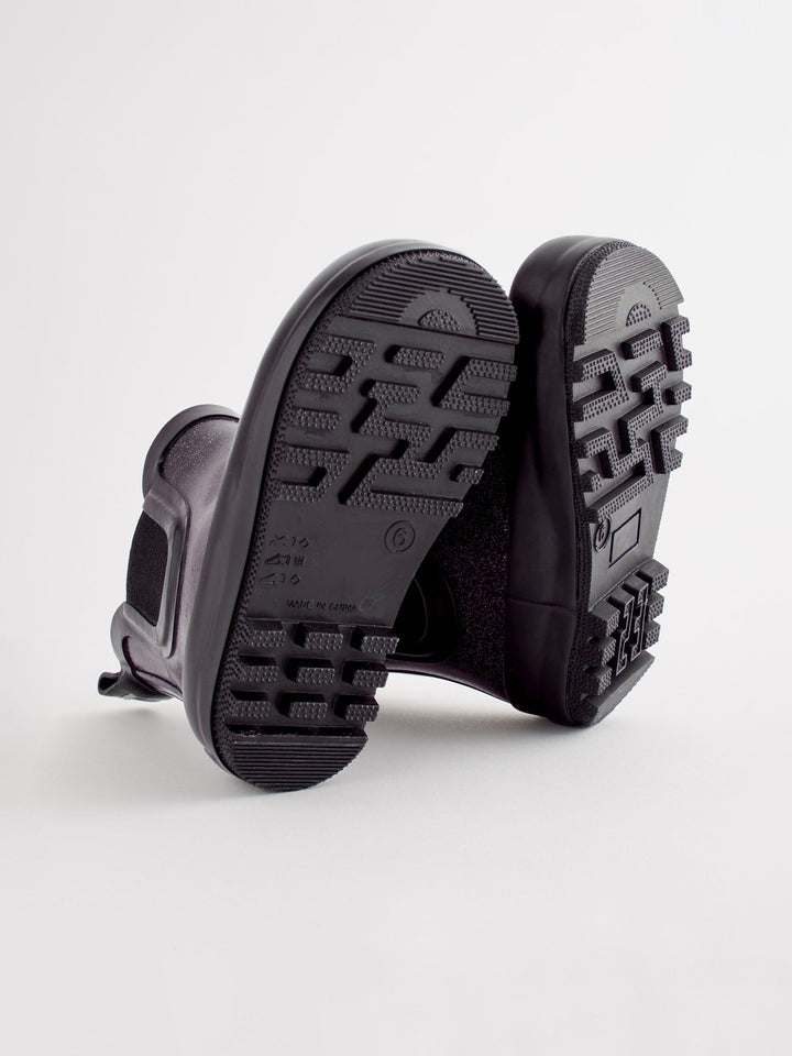 From splashing in puddles to countryside walks, these adorable Wellington boots in black have a Chelsea shape with elasticated side panels, a waterproof upper, a cosy lining and a durable rubber sole unit. View the How to Measure and Fit at Home Guide Upper - Other Materials, Lining & Sock - Textile, Sole - Other Materials. Country of Origin: China