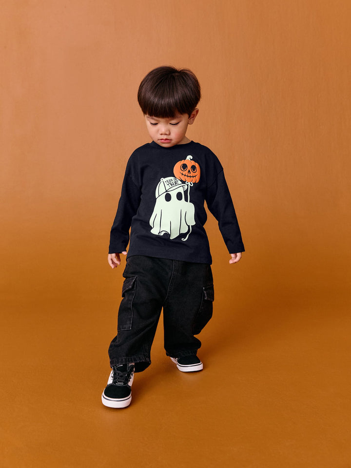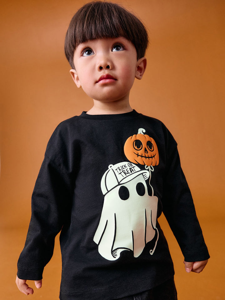 Black Glow in the Dark Ghost Halloween Long Sleeve Graphic Print T-Shirt (3mths-7yrs)
