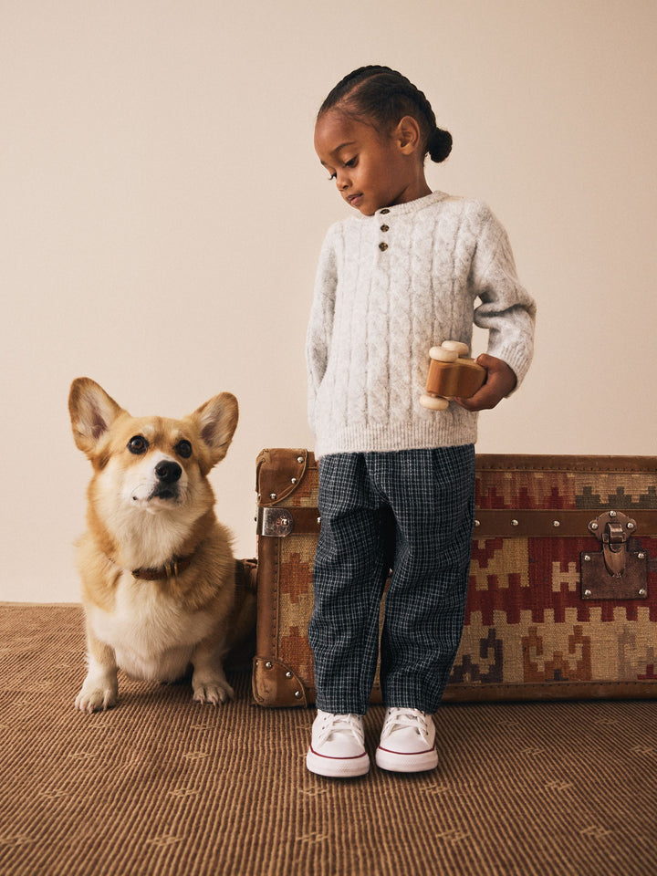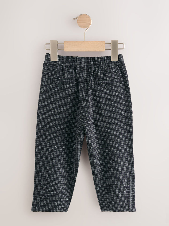 Stay comfortable and smart in these trousers, a versatile option for their wardrobe. The pull-on waist and soft fabric provide a comfortable fit for all-day wear. With a relaxed leg, they're a perfect choice for a day at school or a smart family get-together. Pull-on waist Relaxed leg Functional pockets Drawstring detail 64% Polyester, 33% Viscose, 3% Elastane. Country of Origin: Cambodia