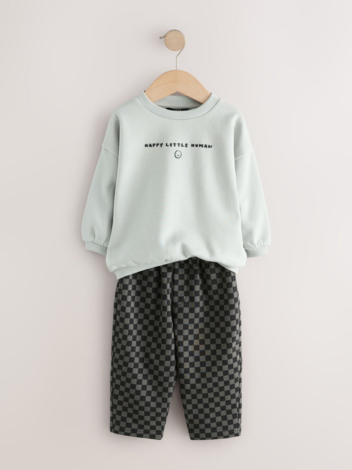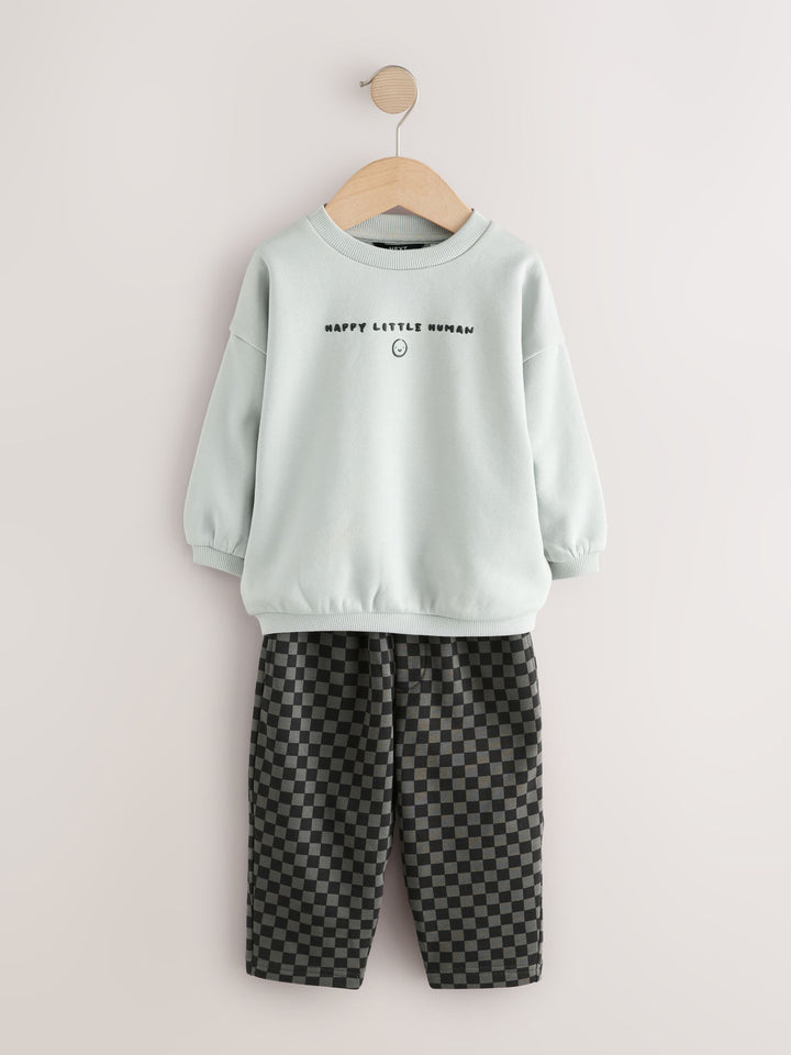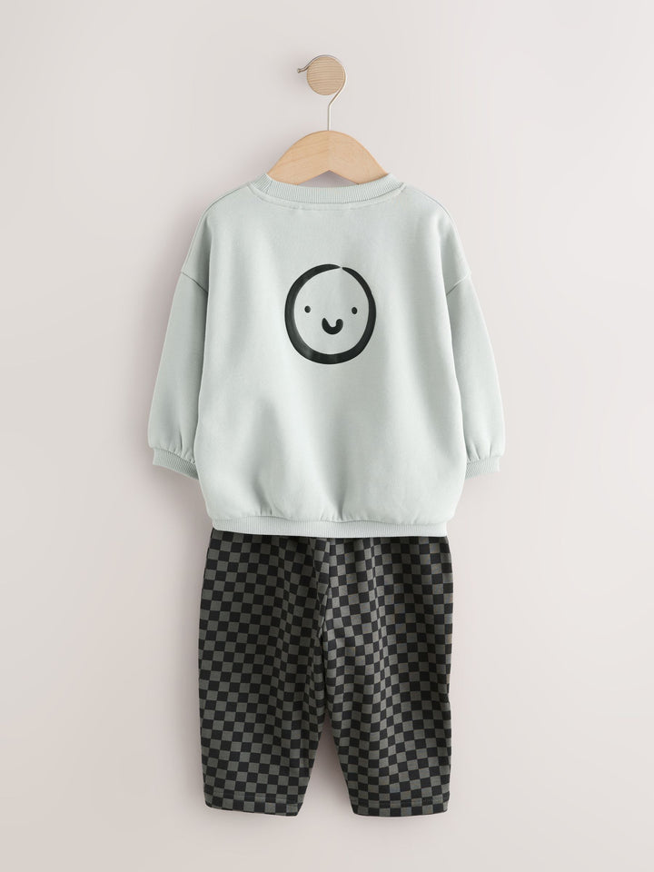Our sweatshirt and stripes joggers set was made for having effortless styling. This two-piece set is made from breathable cotton and features a black sweatshirt and stripey printed joggers. Perfect for his outdoor adventures, add this to his rotation for a seamlessly stylish look. Two piece set 100% Cotton Sweatshirt with a smiley face Elasticated joggers Pockets Machine washable. Sweater and Jogger 80% Cotton, 20% Recycled polyester. Country of Origin: Bangladesh