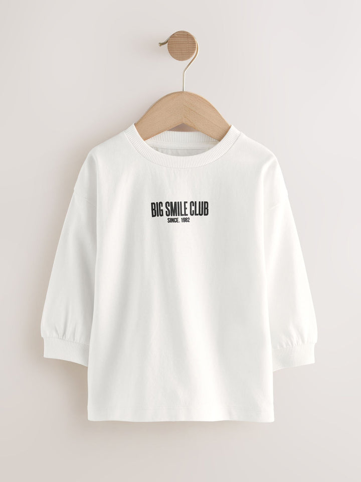 Black/Grey/White Slogan Long Sleeve Graphic Print T-Shirts 3 Pack (3mths-7yrs)
