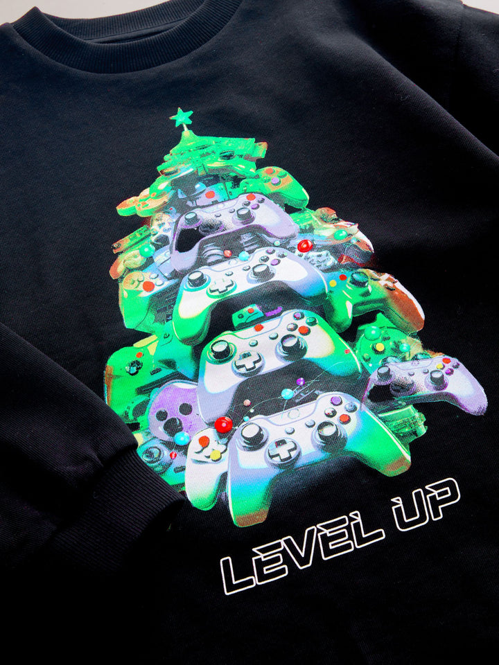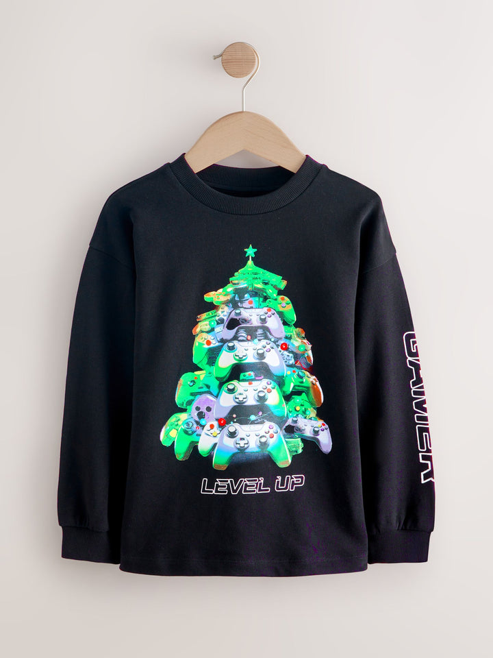 Black Heavyweight Controller Christmas Long Sleeve T-Shirt (3-16yrs)