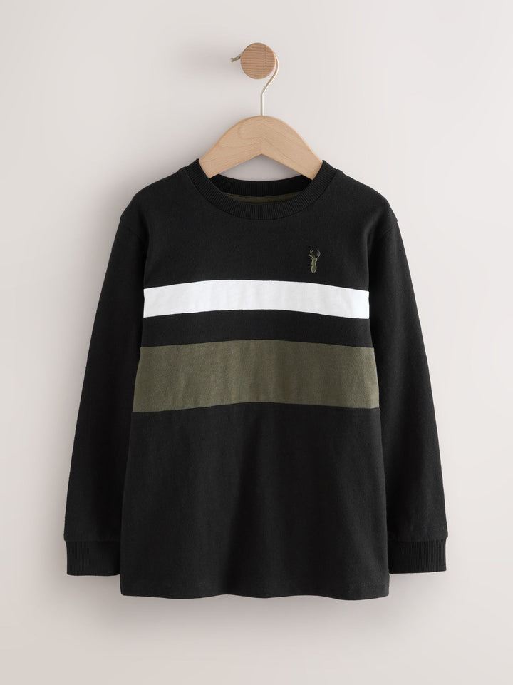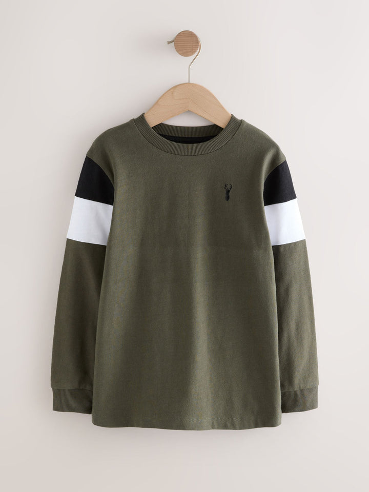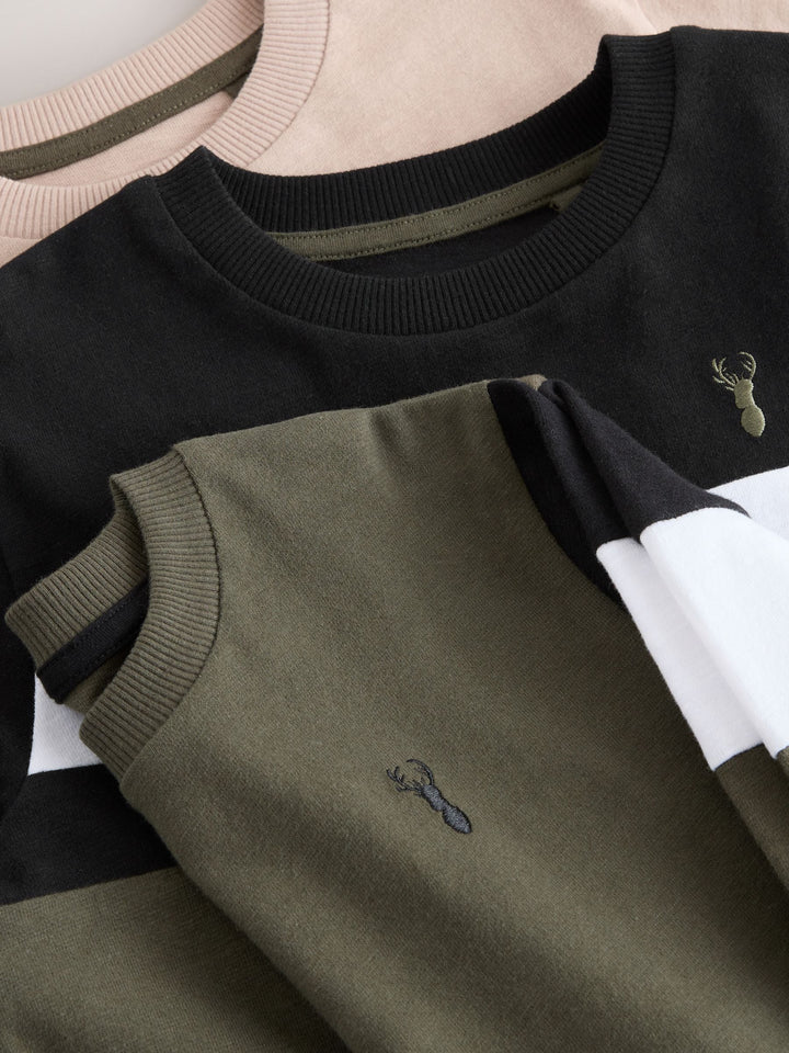 Black/Khaki/Stone Long Sleeve Colourblock T-Shirts 3 Pack (3-16yrs)