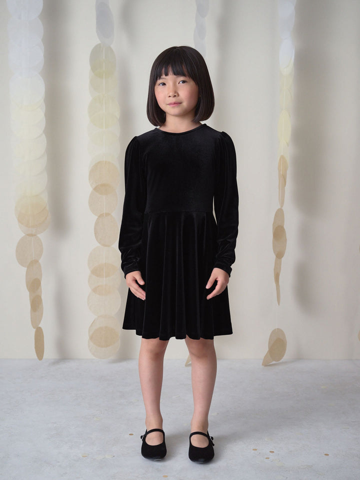 Black Long Sleeve Velvet Dress (3-16yrs)