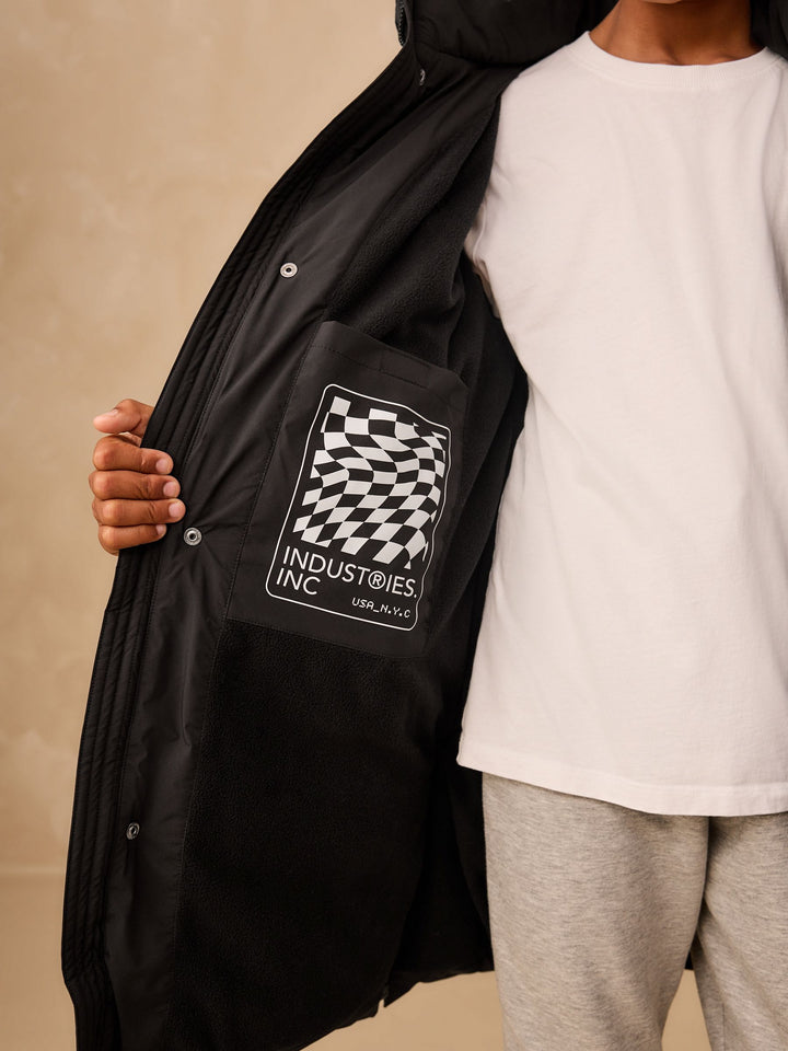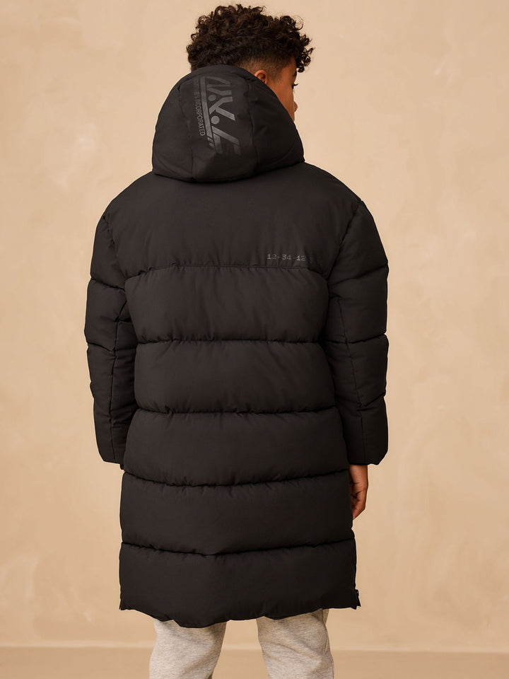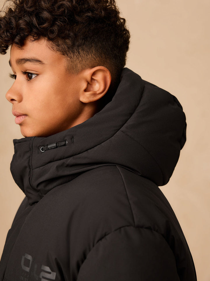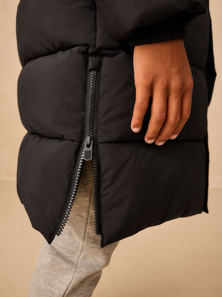Black Longline Shower Resistant Padded Coat (3-17yrs)