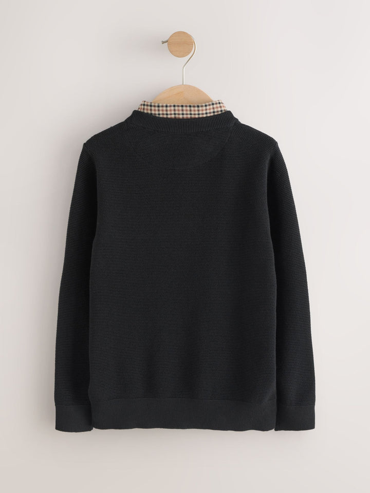Black Mock Gingham Shirt and Crew Neck 100% Cotton Jumper (3-16yrs)
