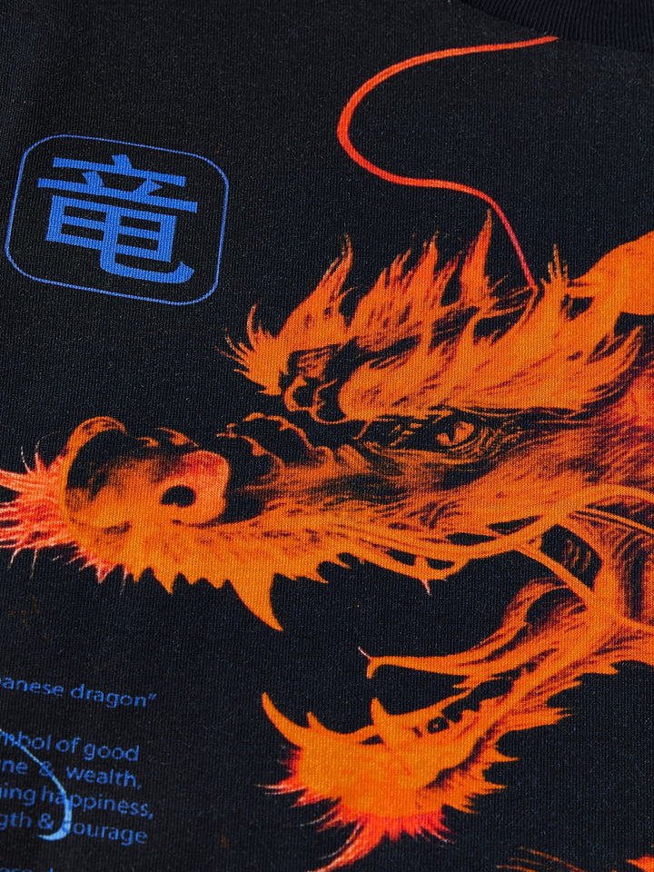 Black/Orange Dragon Regular Fit Short Sleeve All-Over Print T-Shirt (3-16yrs)