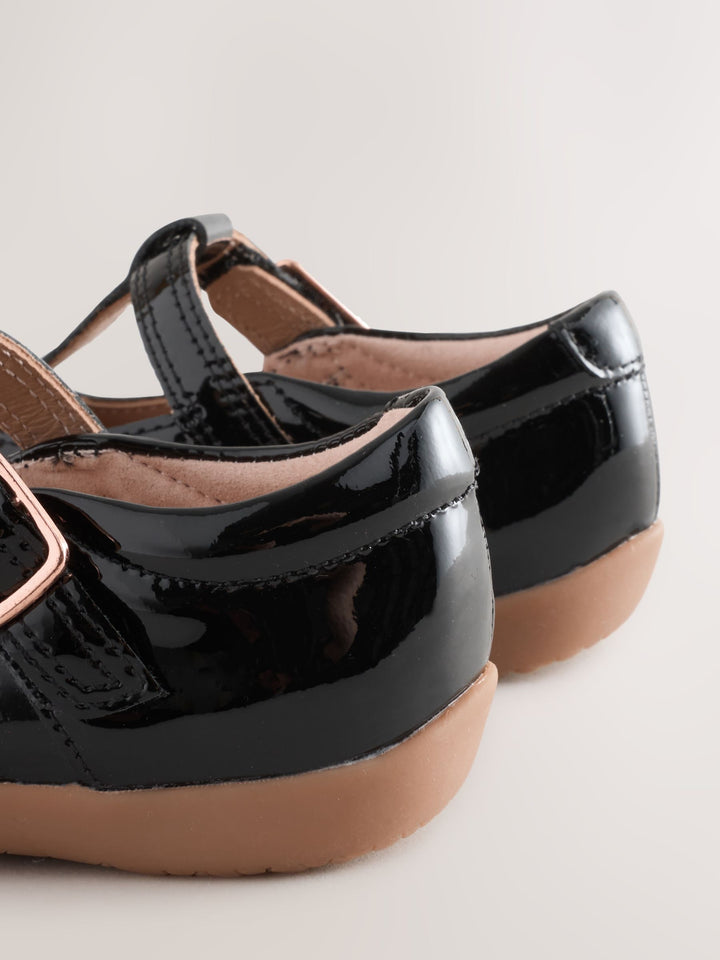 Black Patent Leather Wide Fit (G) First Walker T-Bar Touch Fastening Shoes