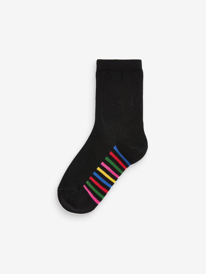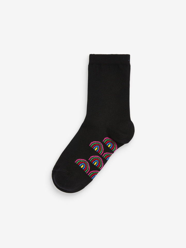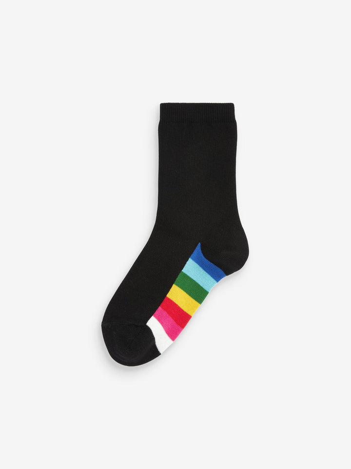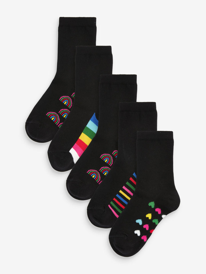 Black Rainbow 5 Pack Cotton Rich Footbed Ankle School Socks
