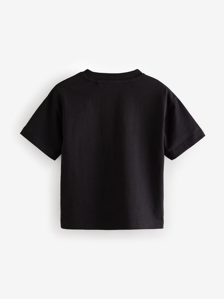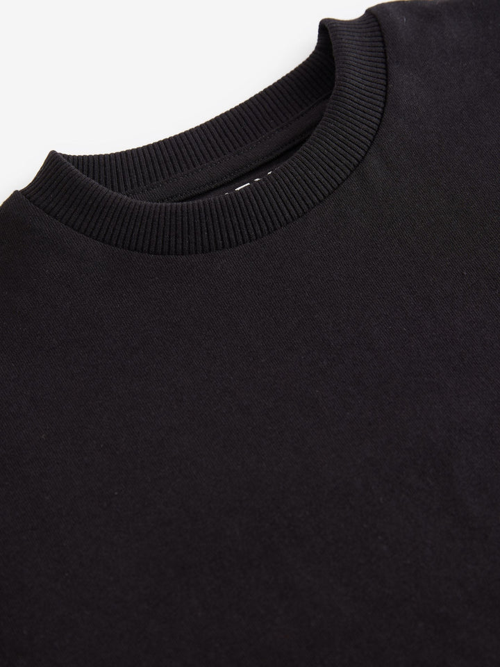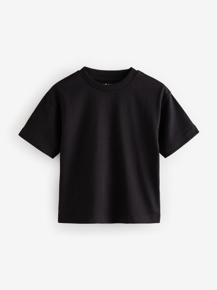 Cut to a relaxed fit, this casual black t-shirt is a style staple, featuring a premium feel thanks to the pure-cotton construction, with a crewneck collar and drop shoulders. Relaxed fit 100% cotton Crewneck collar Drop shoulders Machine washable. 100% Cotton. Country of Origin: Bangladesh