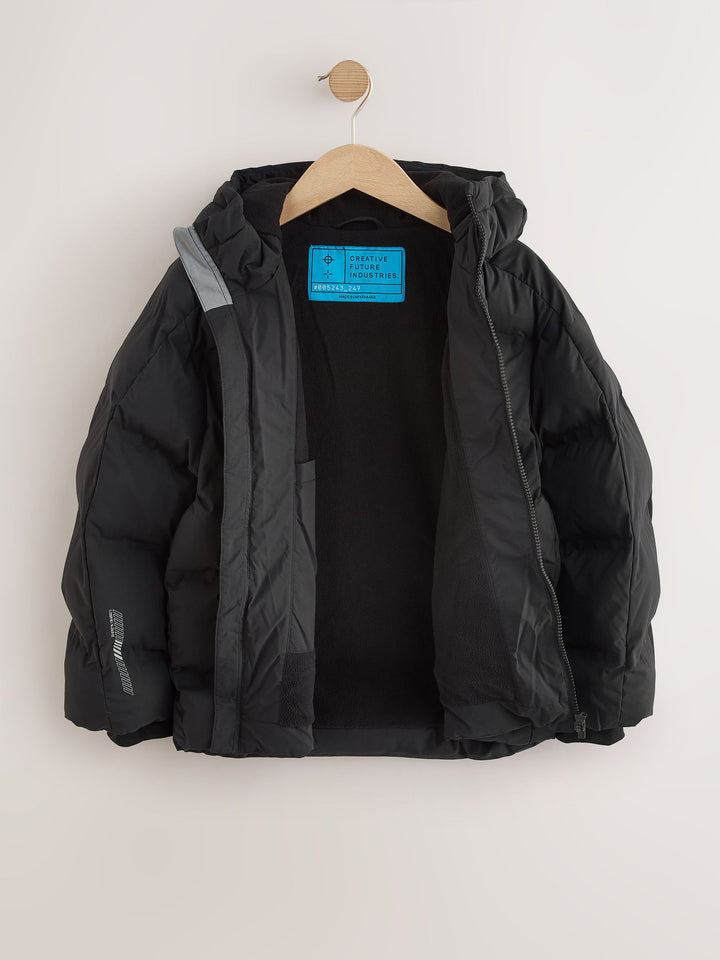 Black Shower Resistant Microfleece Lined Padded Coat (3-17yrs)