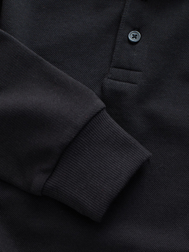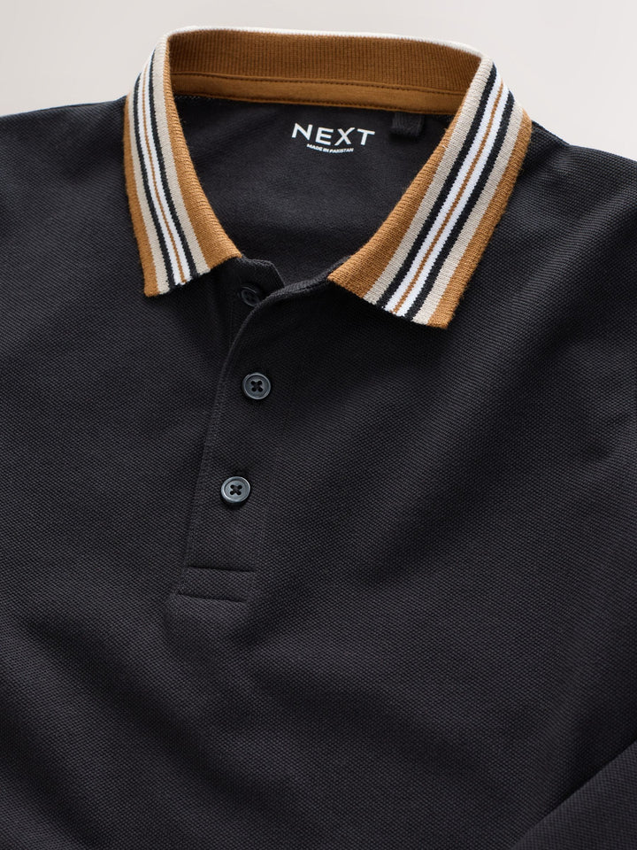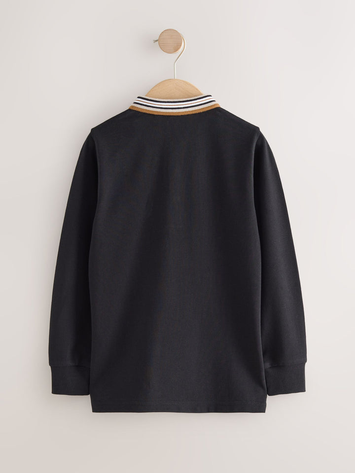 Black/Tan Stripe Tipped Collar Long Sleeve Polo Shirt (3-16yrs)