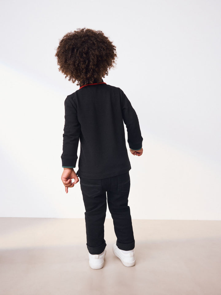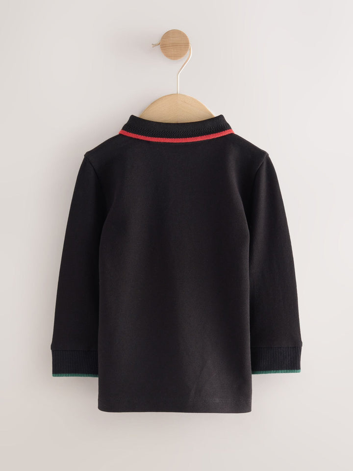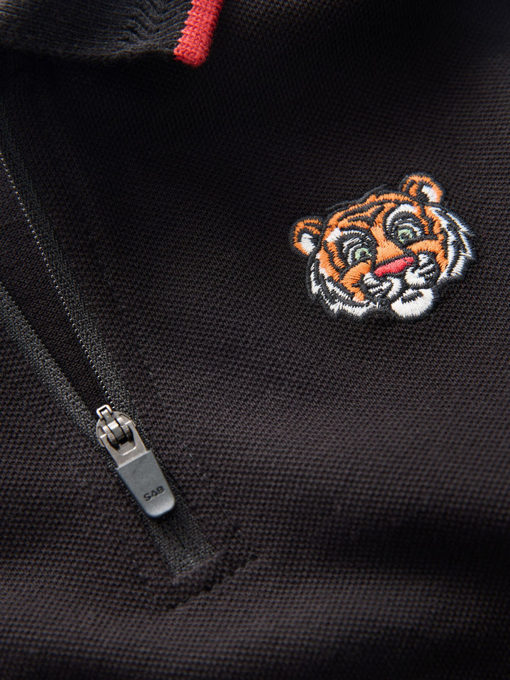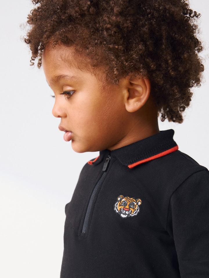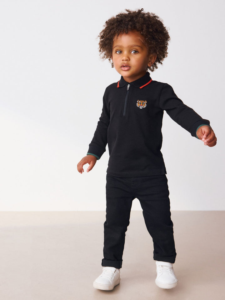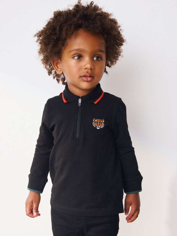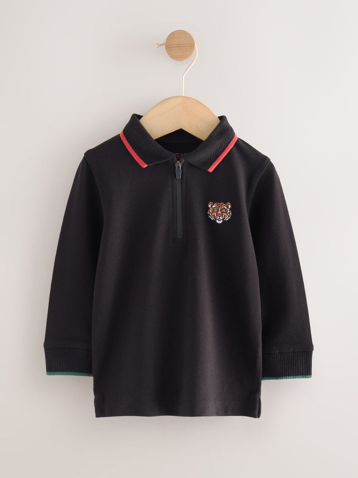Black Tiger Long Sleeve Zip Polo Shirt (3mths-7yrs)