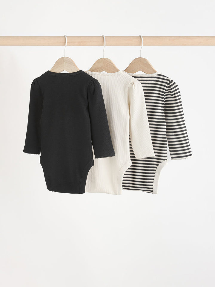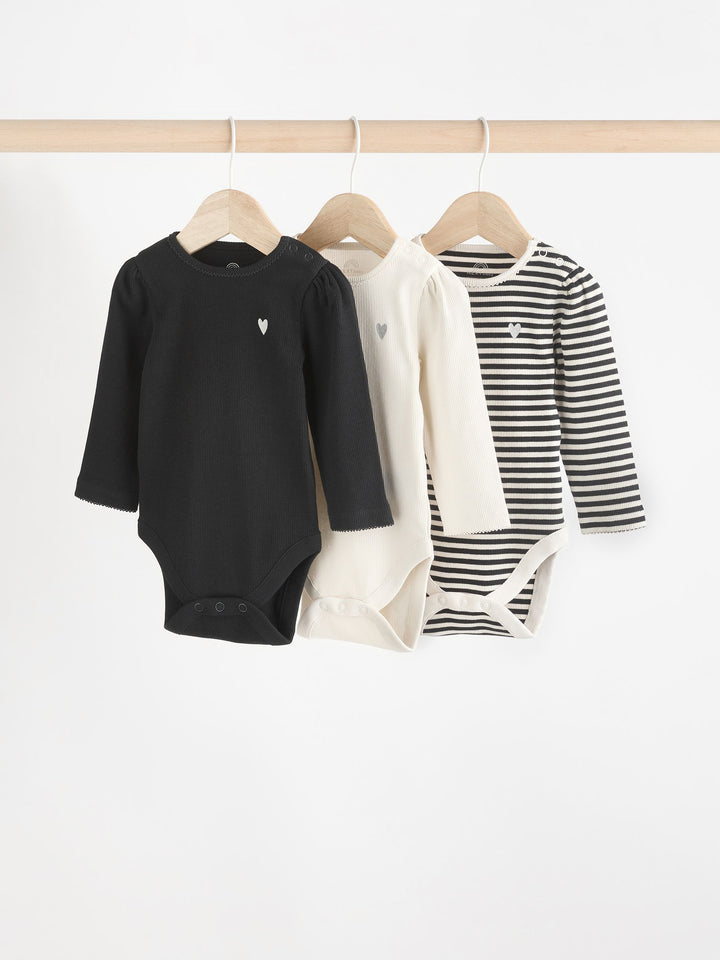 Black/White 3 Pack Long Sleeve Baby Bodysuits