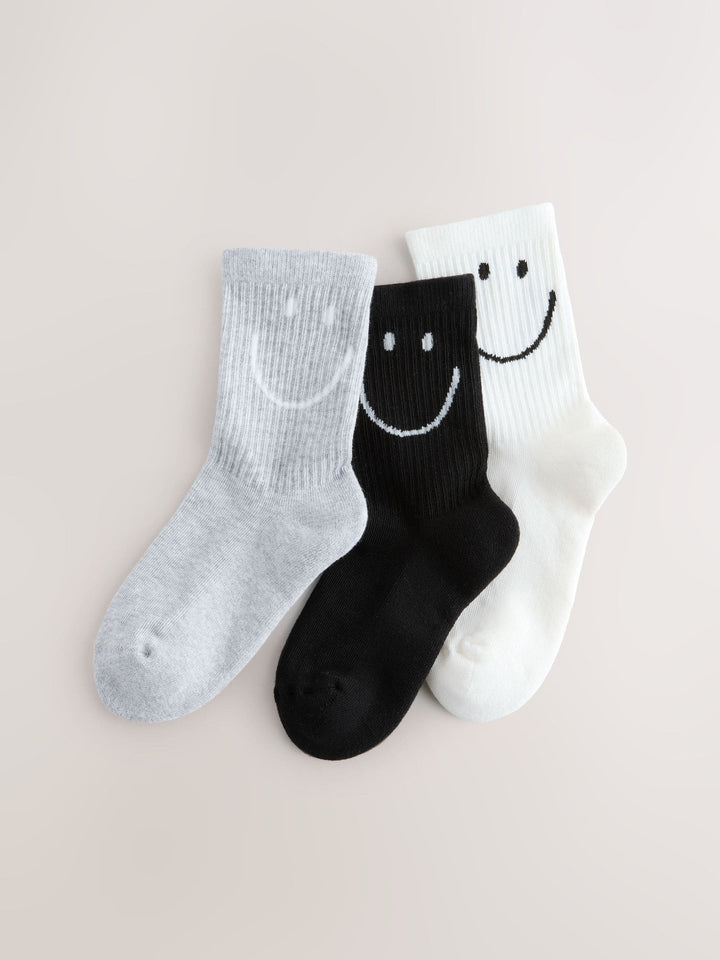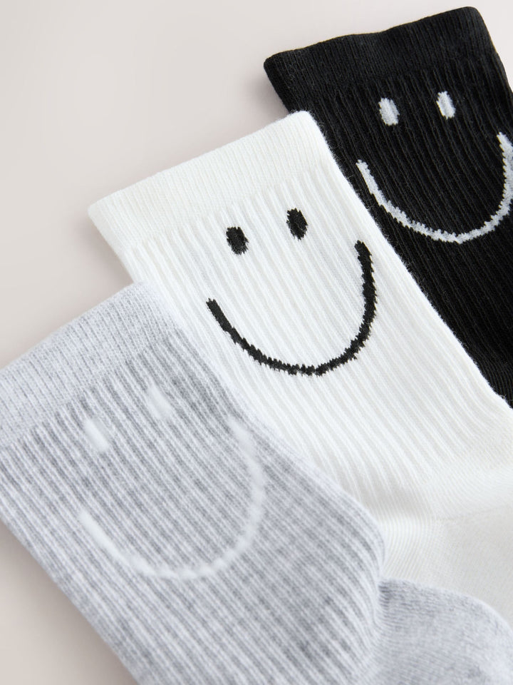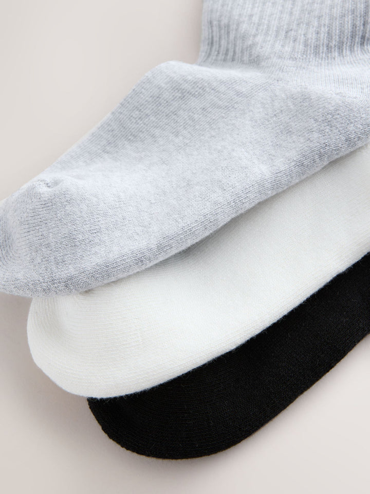 Black White and Grey Regular Length 3 Pack Cotton Rich Cushioned Sole Ankle Socks