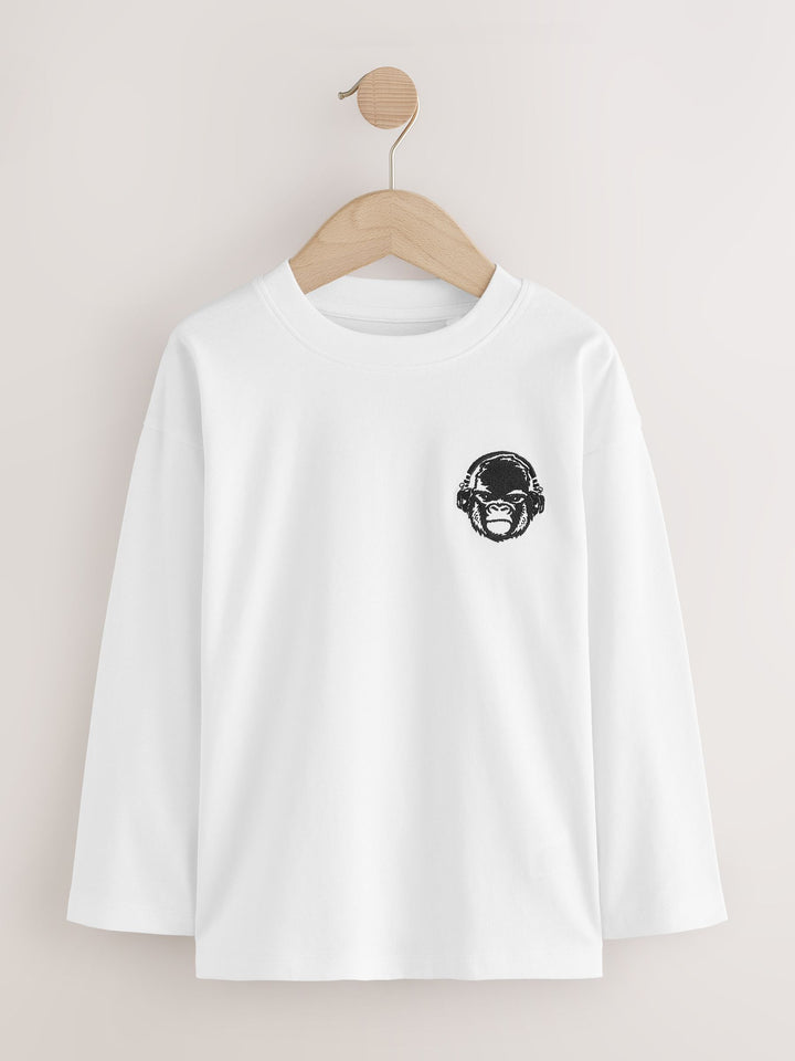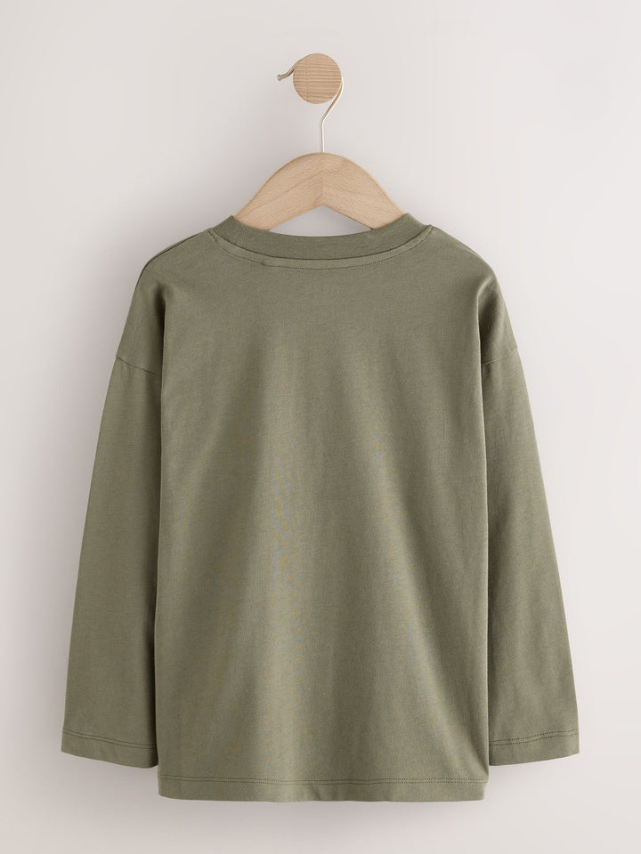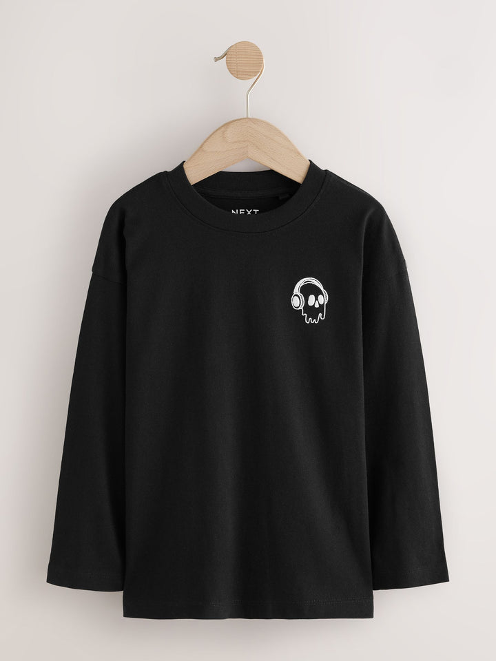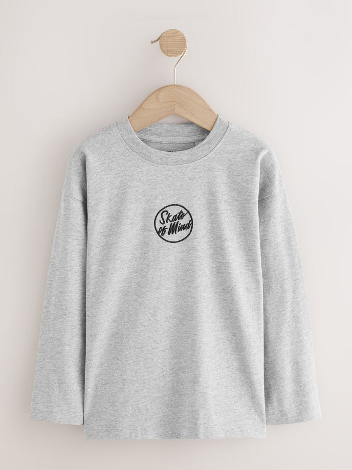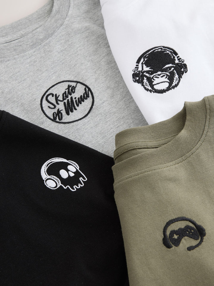 Black/White/Grey Marl/Khaki Long Sleeve Small Graphic T-Shirts 4 Pack (3-16yrs)